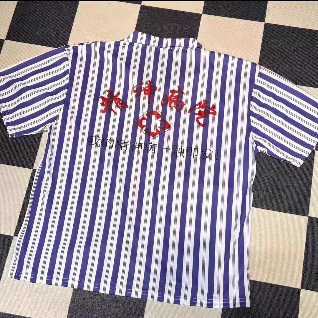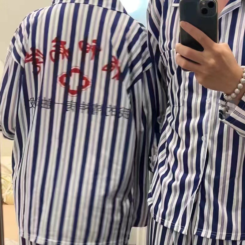 TikTok 같은 스타일의 정신 병원 아픈 옷 파자마 줄무늬 반팔 홈 의류 퇴원 병가 의류 남성 및 여성 의류