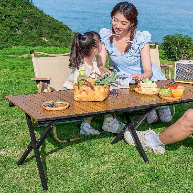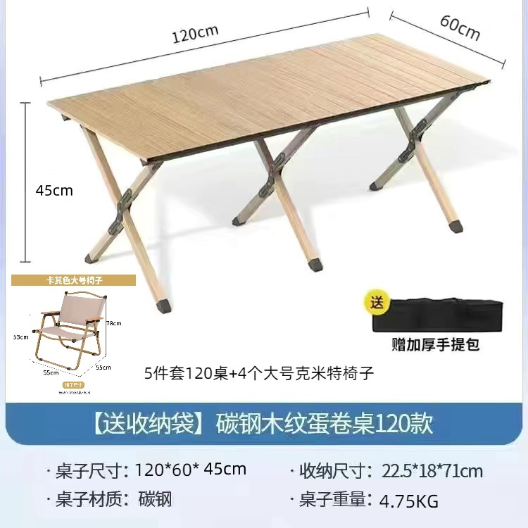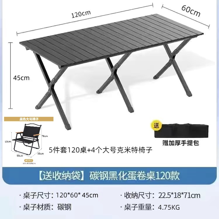 户外折叠桌便携式野餐露营碳钢折叠桌庭院花园露天野餐桌椅套装