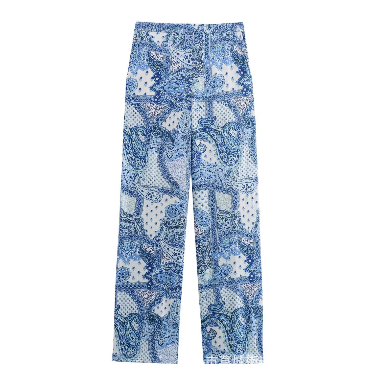 UC & ZA 국경 AliExpress 유럽과 미국 스타일 여성의 여름 높은 허리 페이즐리 인쇄 느슨한 캐주얼 바지 3350777