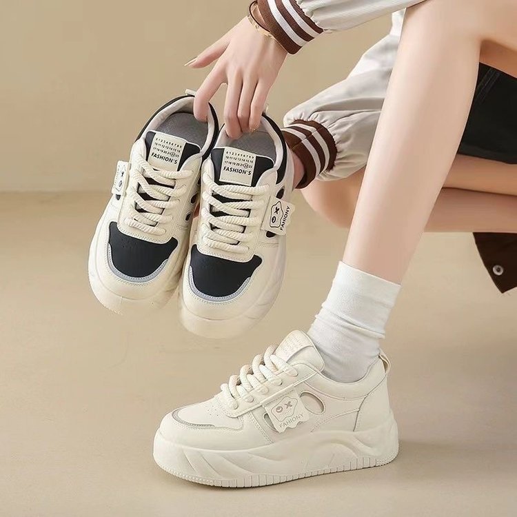 운동화 여성의 2024 봄 새로운 부드러운 밑창 학생 흰색 신발 두꺼운 밑창 캐주얼 패션 보드 신발 도매