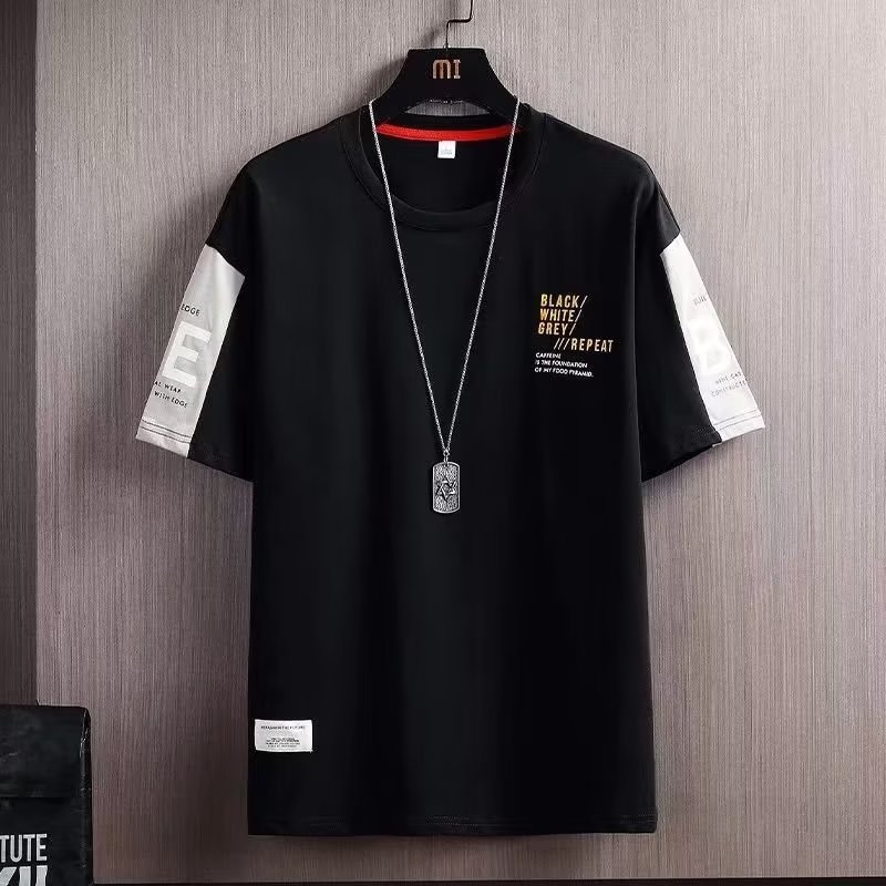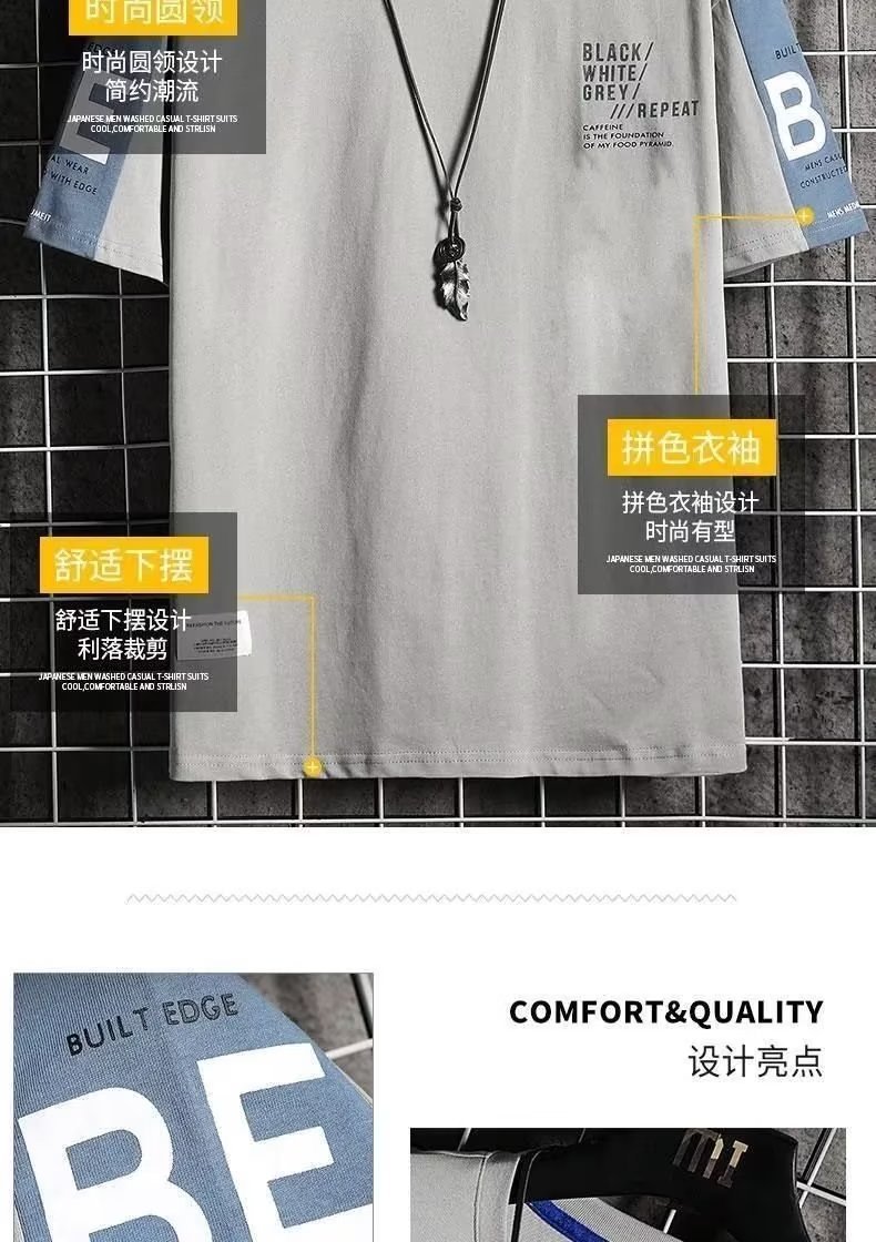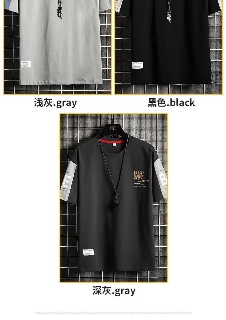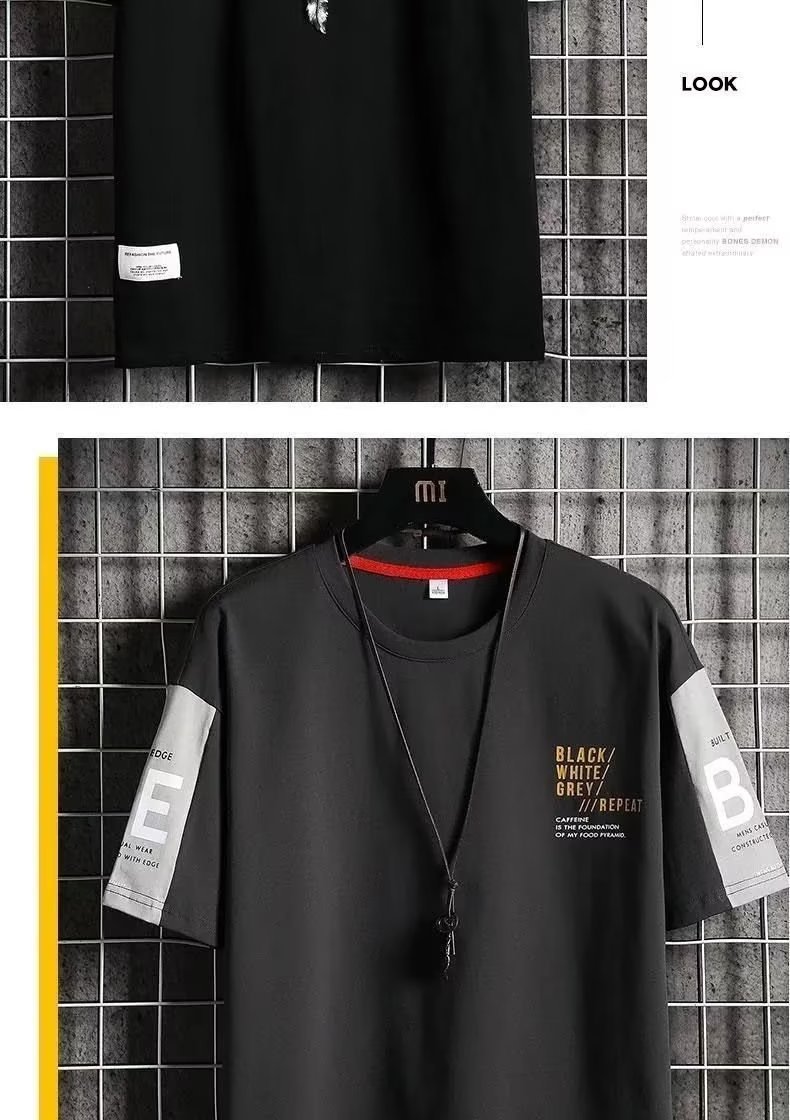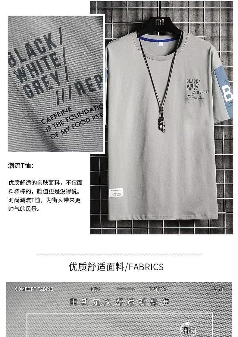 반팔 티셔츠 남자 여름 느슨한 올 매치 라운드 넥 캐주얼 하프 슬리브 톱 2024 새로운 간단한 올매치베이스 셔츠