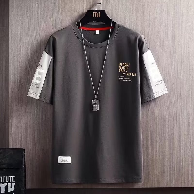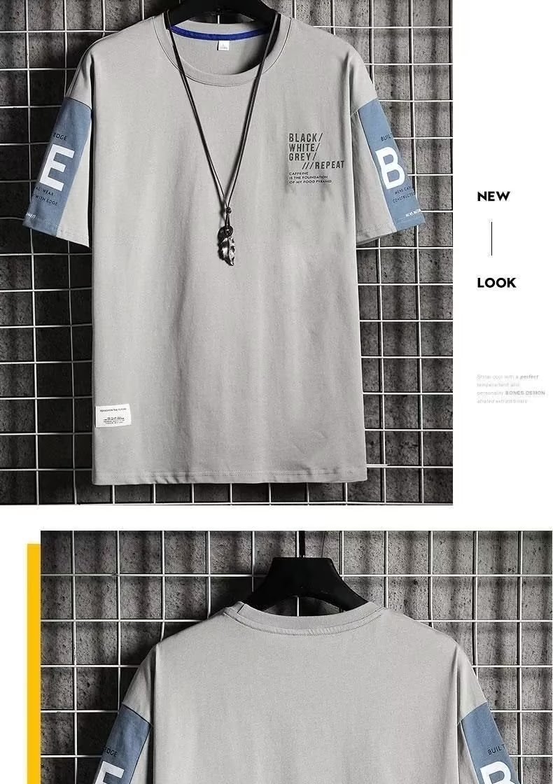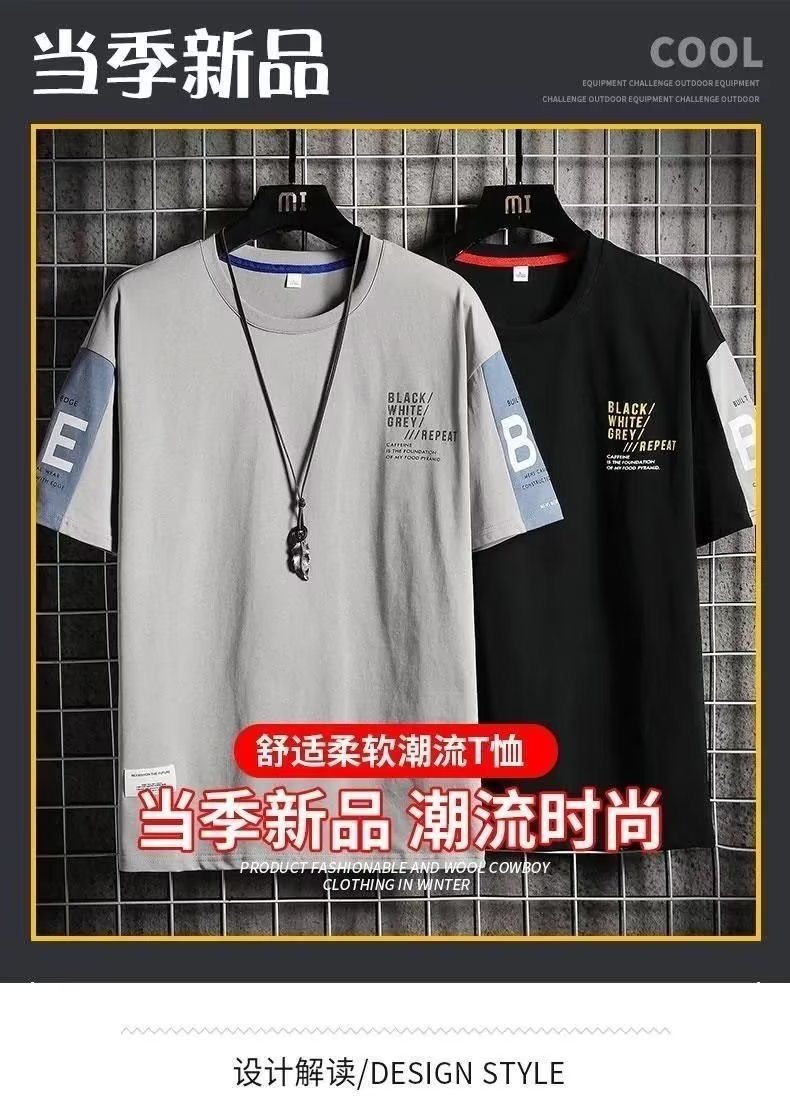 반팔 티셔츠 남자 여름 느슨한 올 매치 라운드 넥 캐주얼 하프 슬리브 톱 2024 새로운 간단한 올매치베이스 셔츠스토어 가기