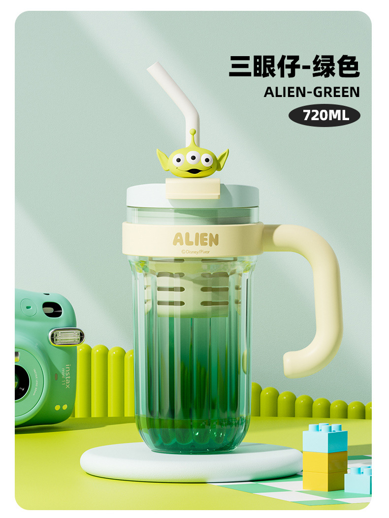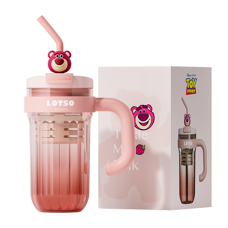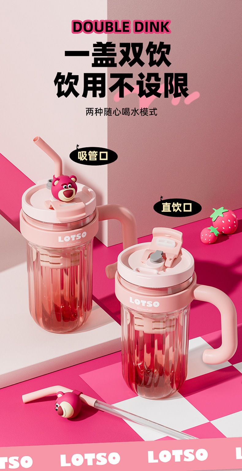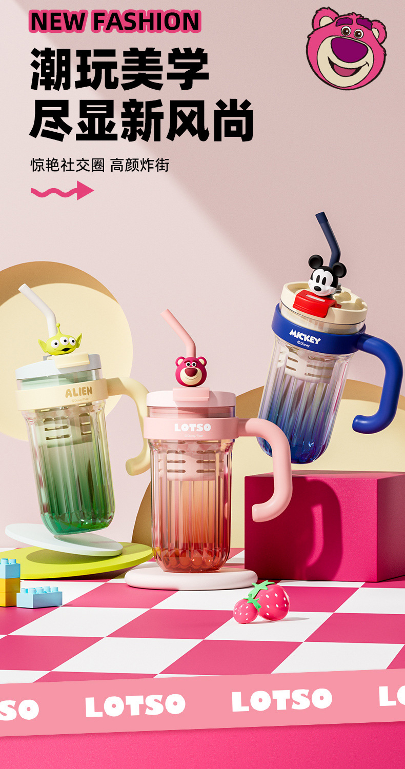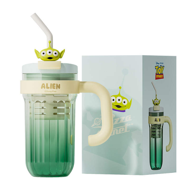 손잡이를 가진 디즈니 플라스틱 물 컵 2024 새로운 여성의 귀여운 여름 성인 차 창고 대용량 흡입 컵