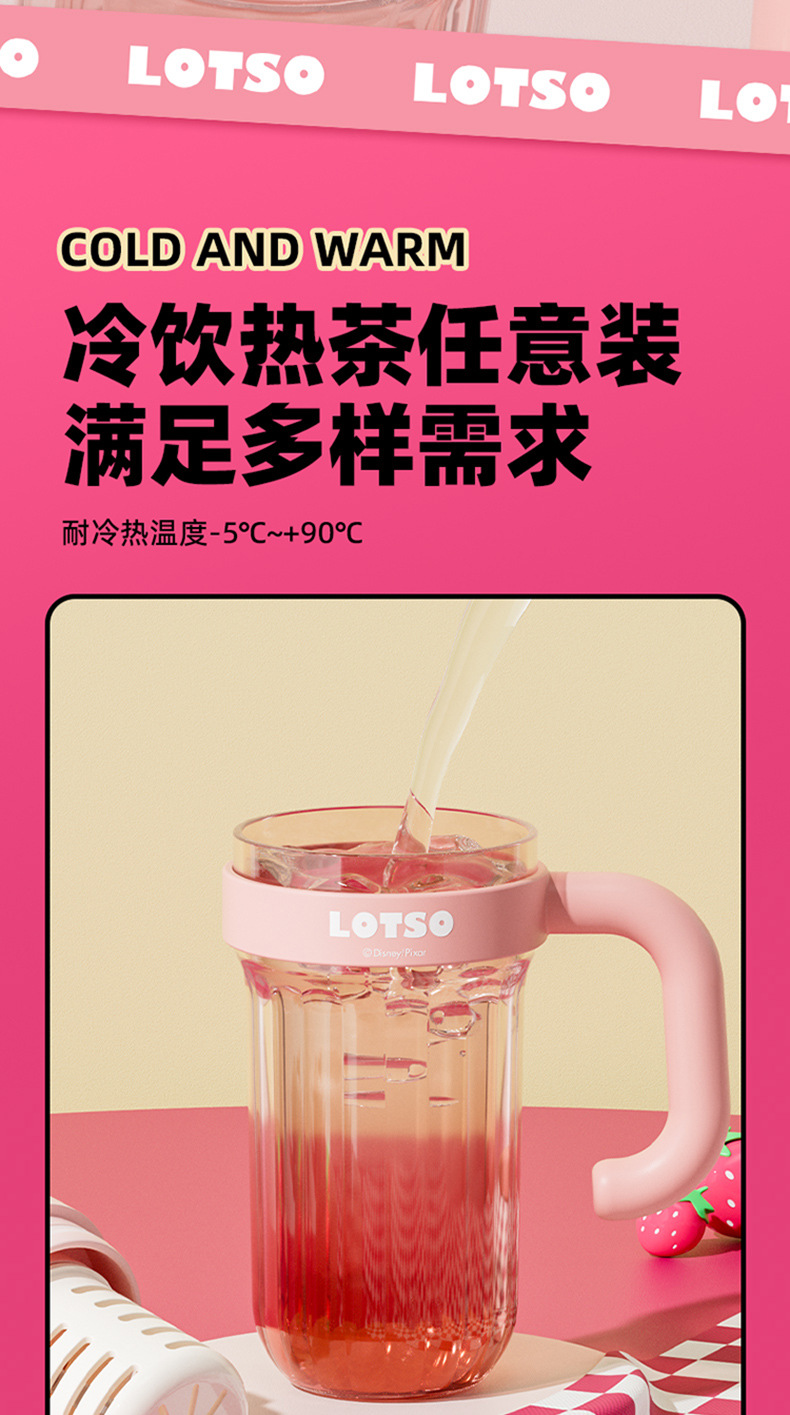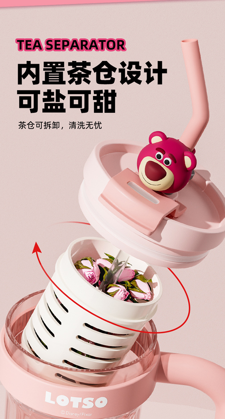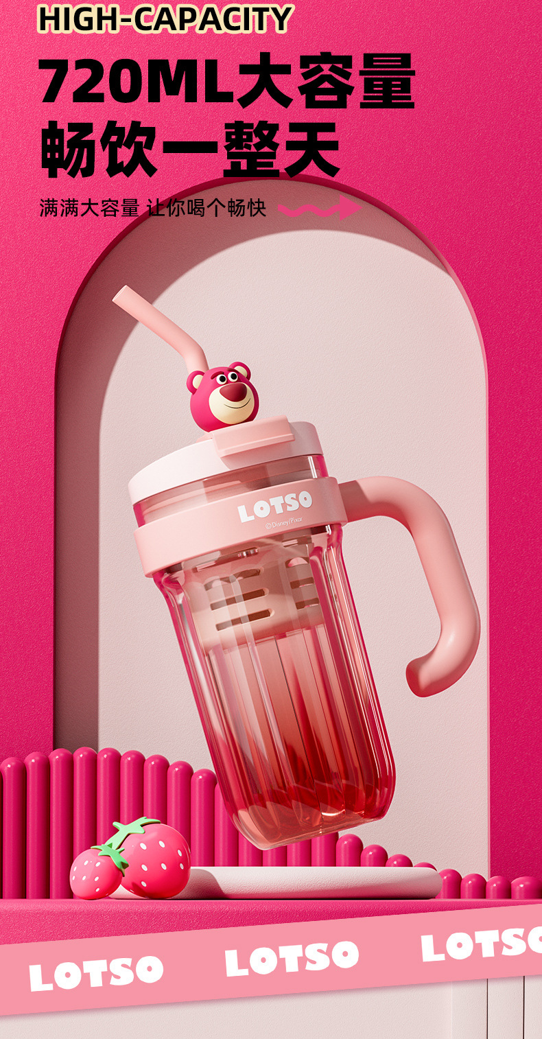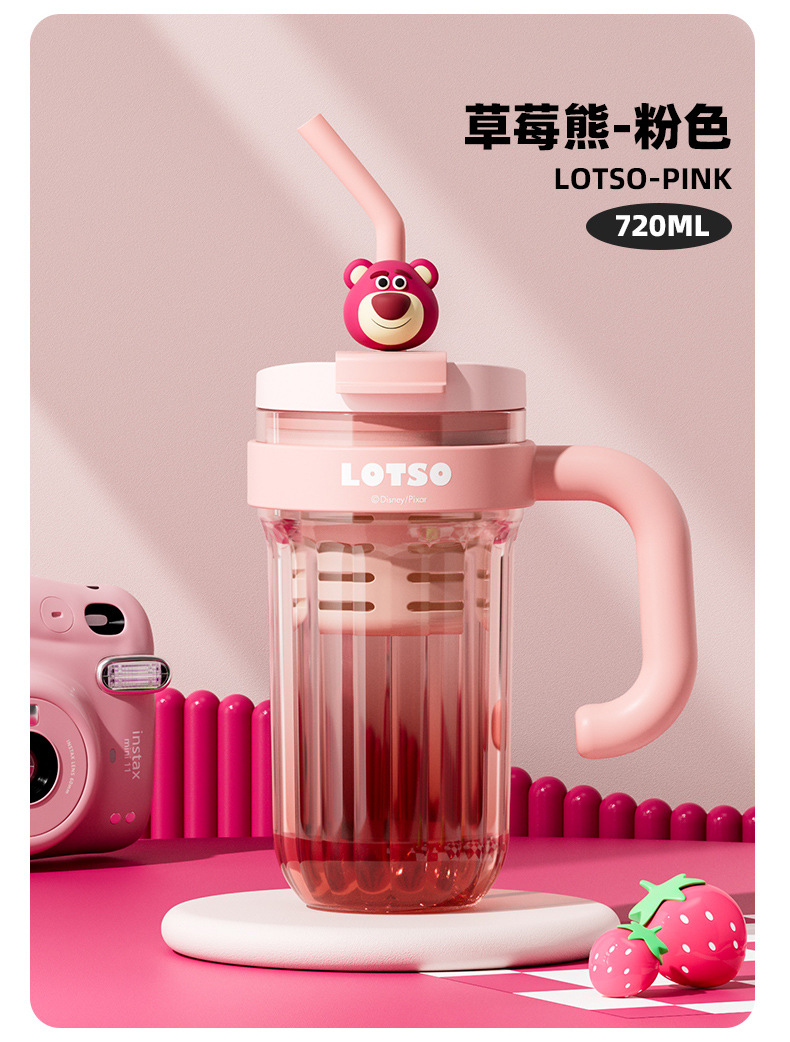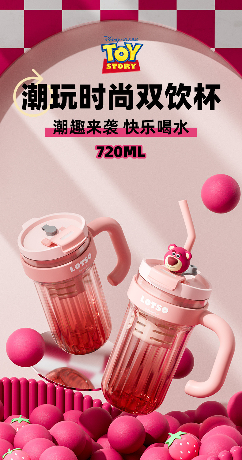 손잡이를 가진 디즈니 플라스틱 물 컵 2024 새로운 여성의 귀여운 여름 성인 차 창고 대용량 흡입 컵