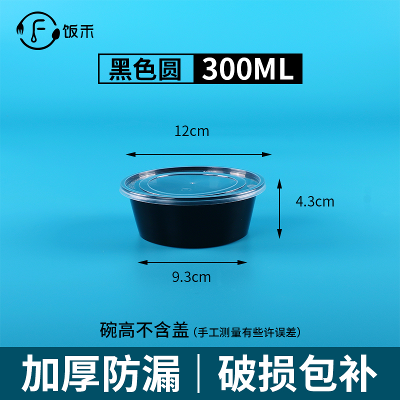 음식과 음료 호텔 포장 상자 일회용 도시락 둥근 뚜껑 테이크 아웃 검은 수프 그릇 플라스틱 도시락 상자