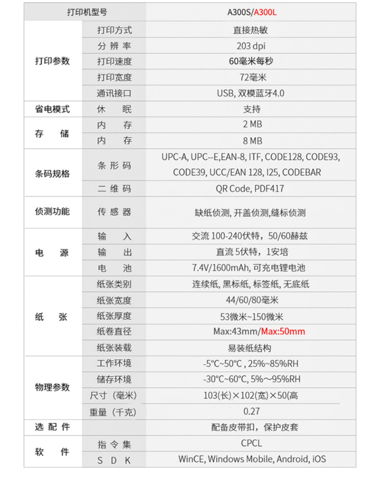 Hanyin A300L 휴대용 익스프레스 프린터 전자 양식점 라벨 픽업 코드 휴대 전화 블루투스 주문