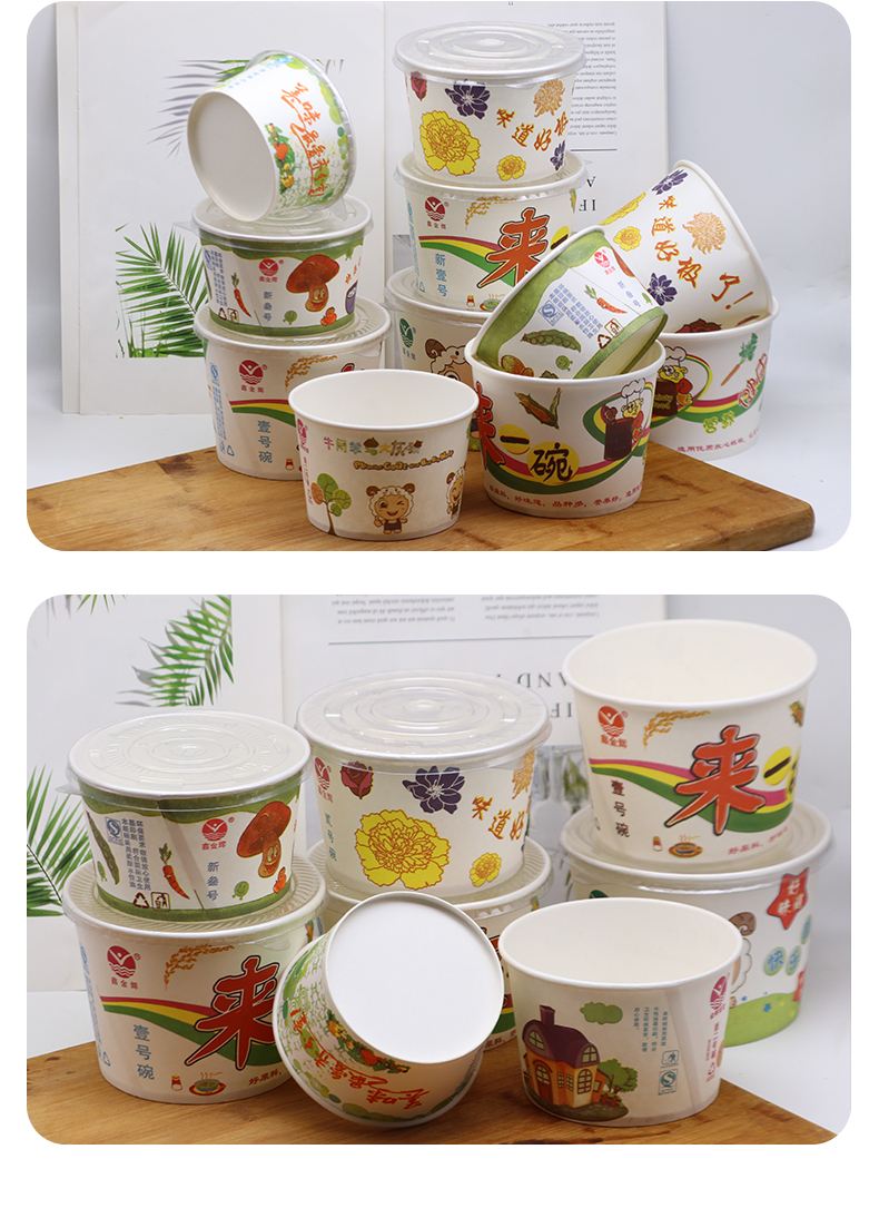 일회용 종이 그릇 라운드 식사 상자 테이크 어웨이 포장 수프 그릇 간식 테이크 어웨이 라운드 수프 그릇 450 뚜껑이 달린 상업용스토어 가기