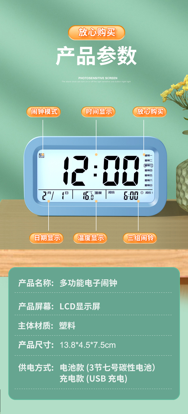 알람 시계 학생 알람 깨우기 전자 시계 어린이 소년과 소녀는 크로노 그래프 시계로 깨어납니다.스토어 가기