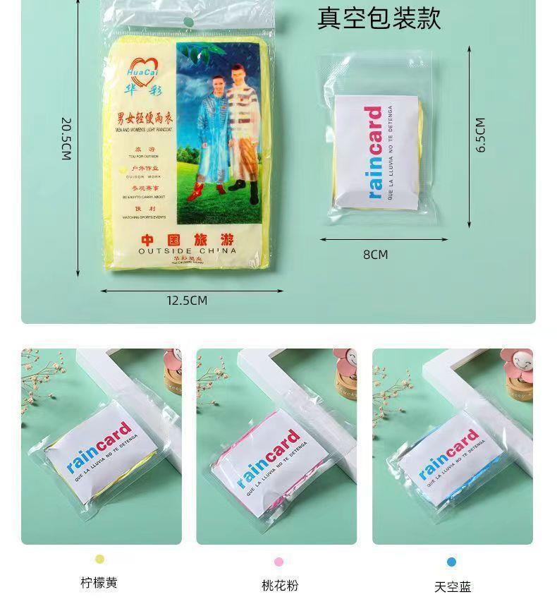 압축 휴대용 카드 유형 비옷 성인 남성과 여성의 긴 비 코트 전신 안티-영어 일회용 비옷