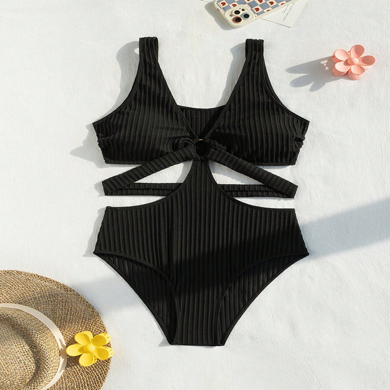 亚马逊2024新款欧美性感游泳衣女款高级感系带沙滩比基尼温泉泳装