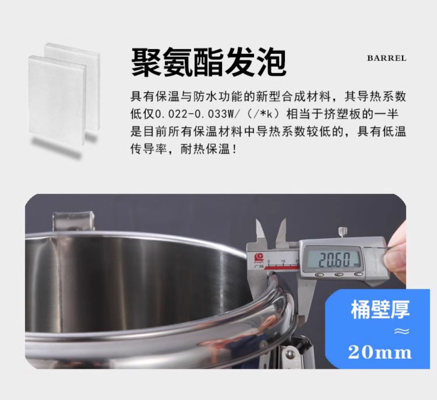 • 304 스테인레스 스틸 두꺼운 폼 3층 단열 70L 단일 수전.