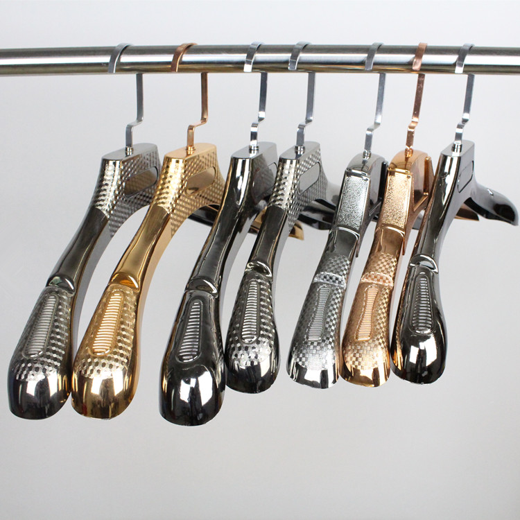 플랫 훅 남자와 여자의 로즈 골드 밝은 옷걸이 미끄럼 방지 전기 도금 플라스틱 옷걸이 넓은 세트 의류 의류 옷걸이 바지 클립