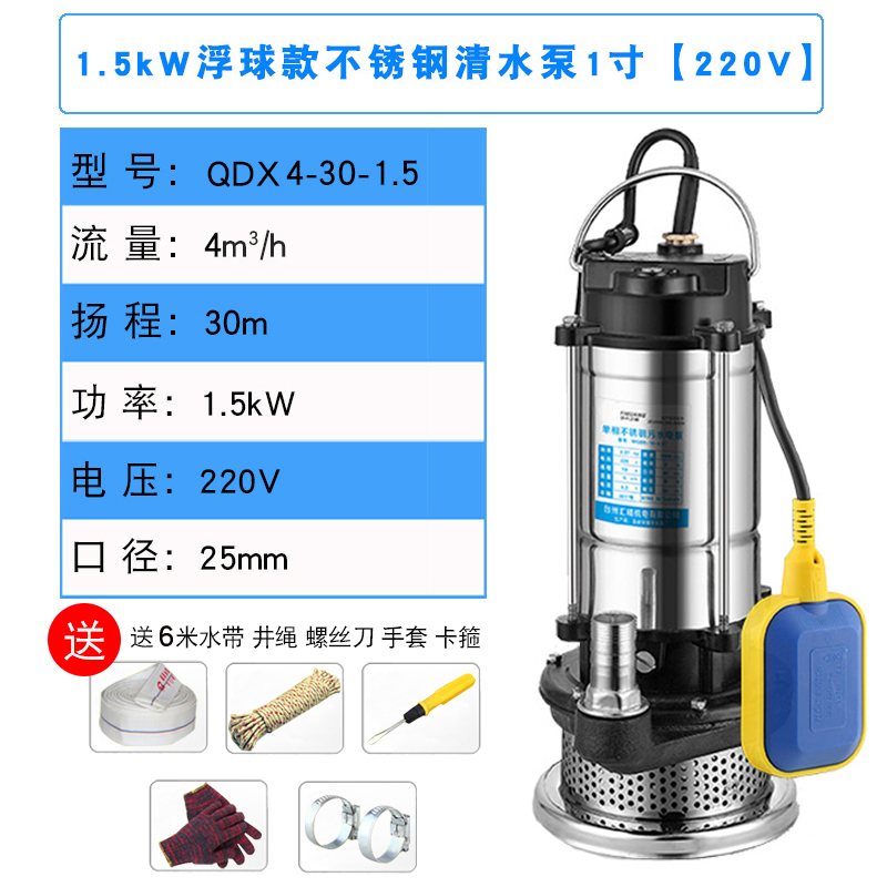 • 1.5kW 플로팅 볼 스테인레스 스틸 정수 펌프 1inch