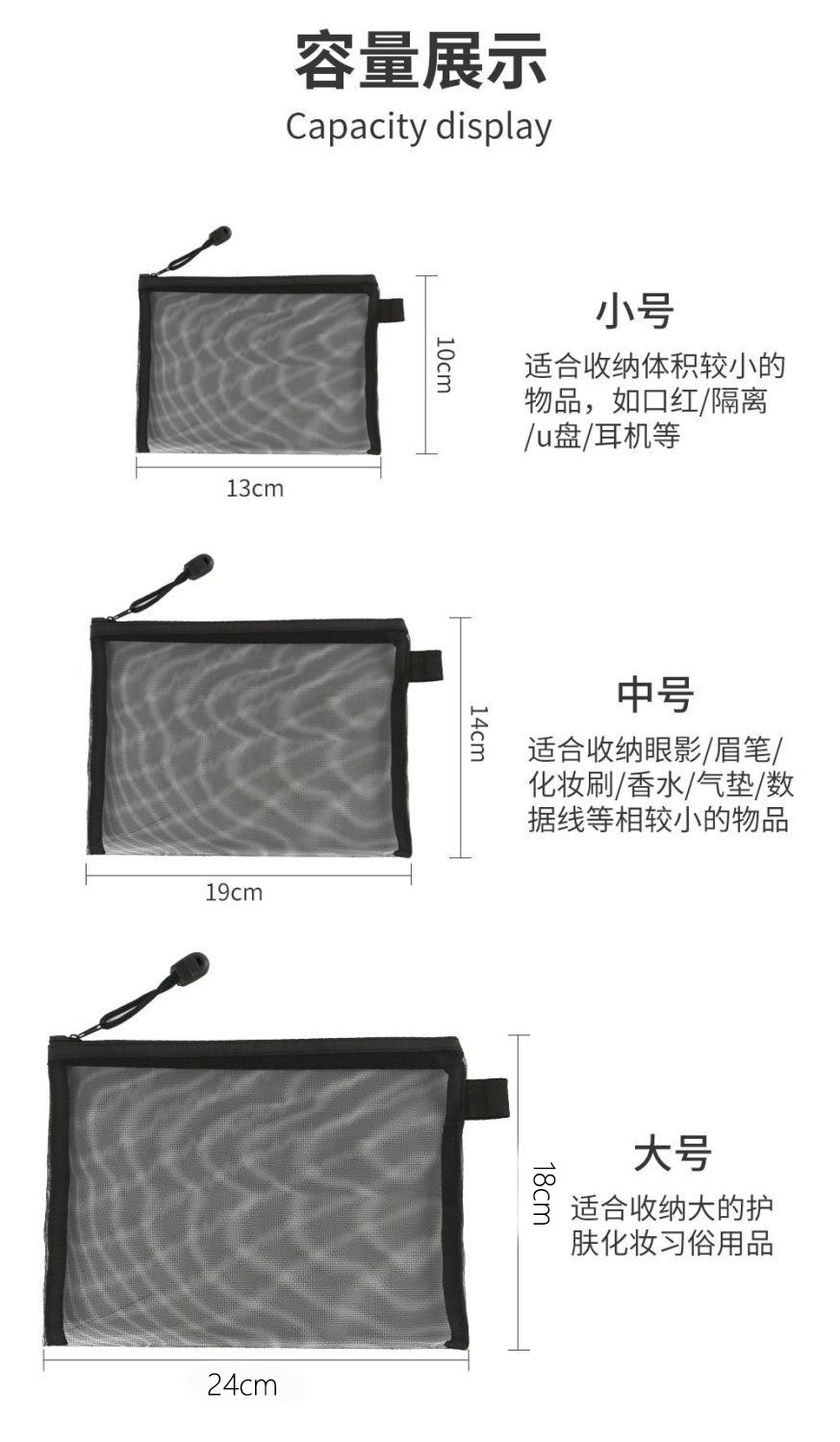 블랙 거즈 워시 핸드백 보관 가방 나일론 거즈 화장품 보관 가방 여행 휴대용 화장품 가방스토어 가기