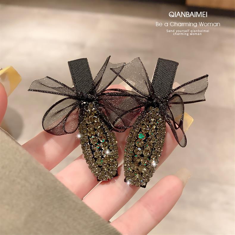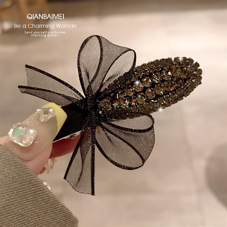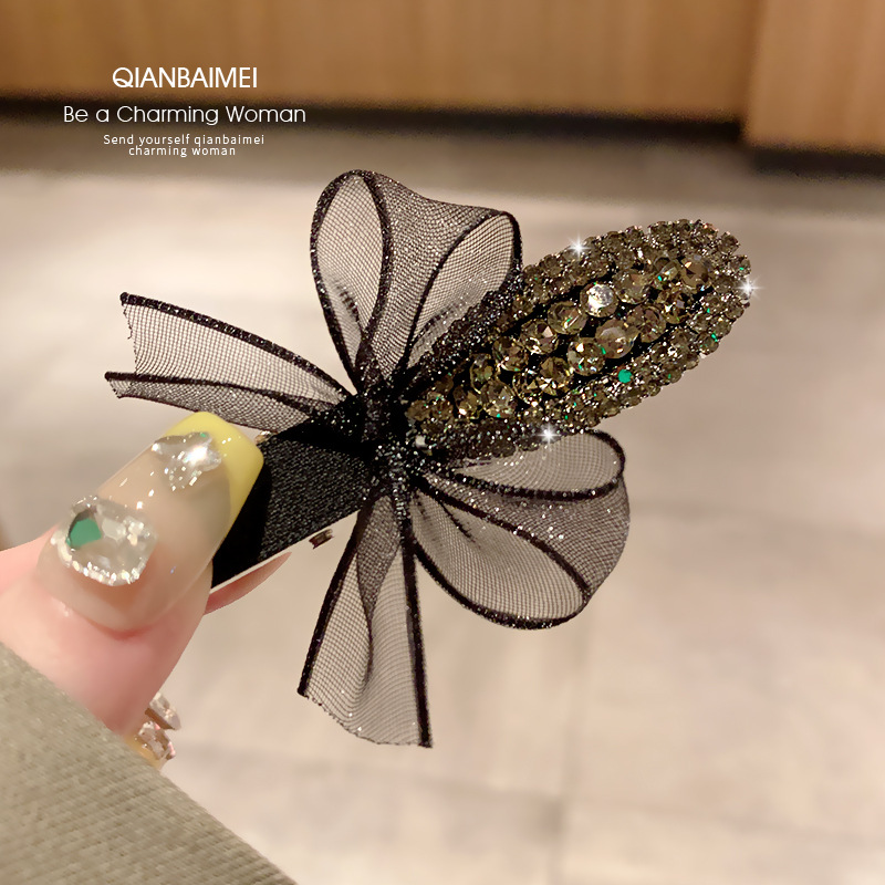 한국 우아한 블랙 덕빌 클립 사이드 클립 헤어핀 레이스 활 헤드웨어 클립 사이드 클립 깨진 헤어핀