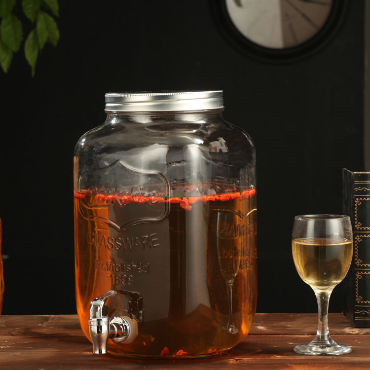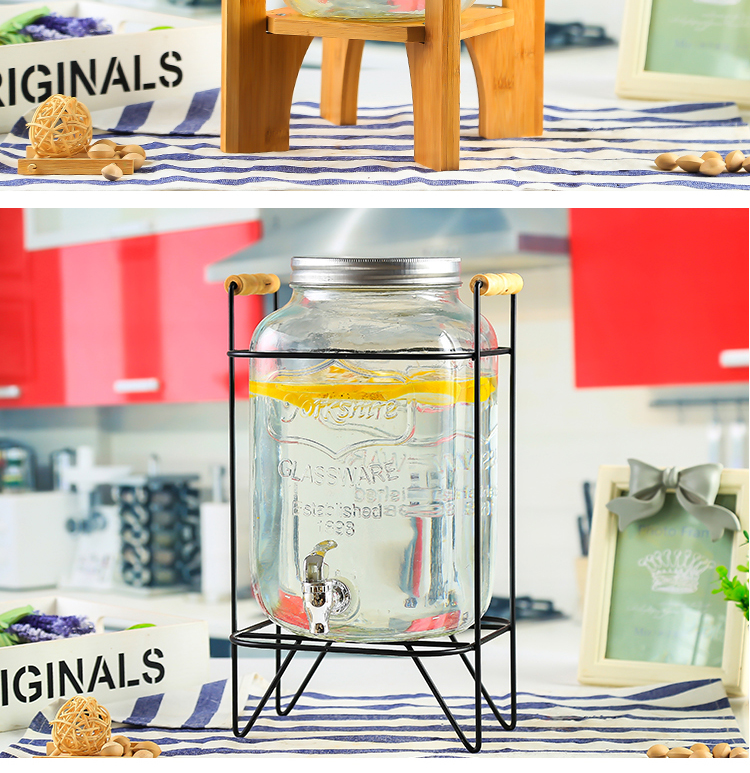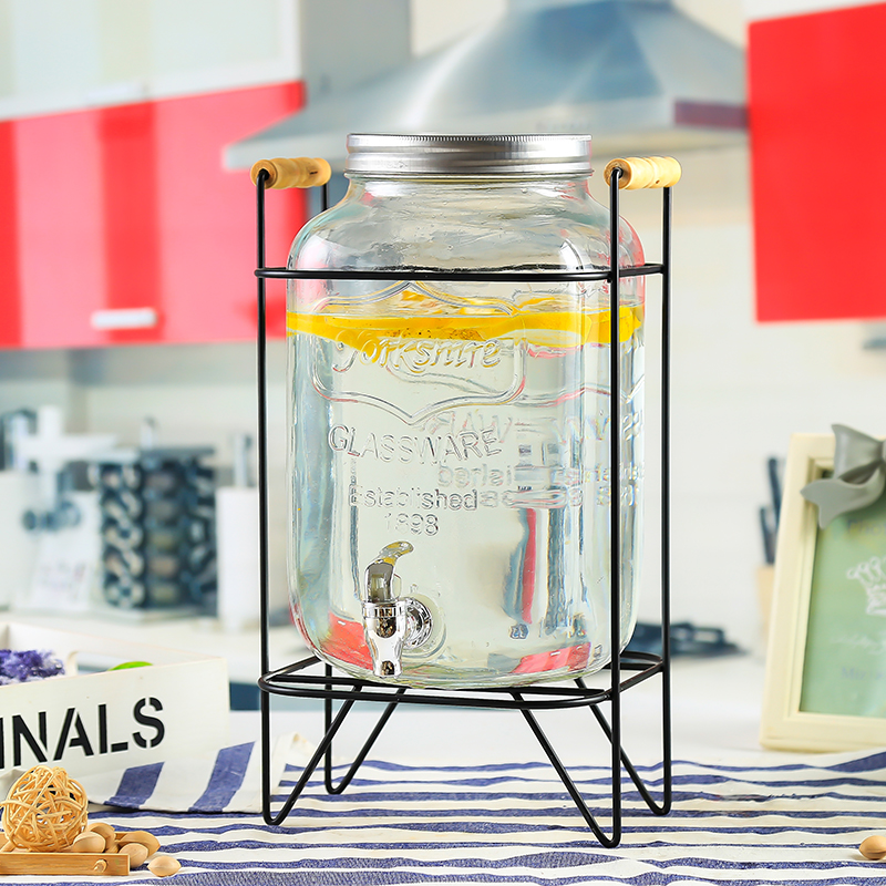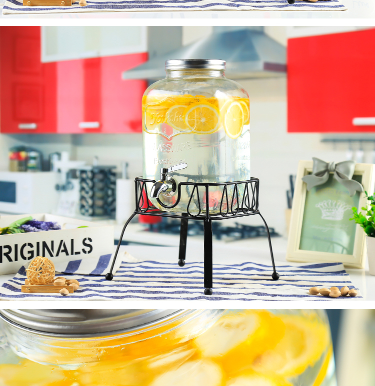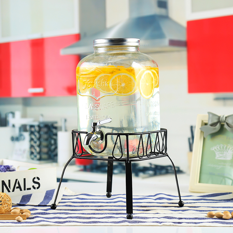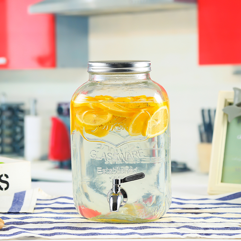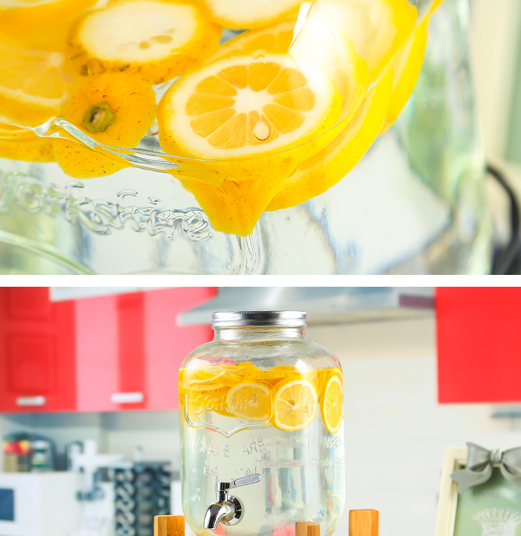 차가운 물 주전자 가정용 용량 유리 항아리 셀프 서비스 음료 버킷 탭 콜라 버킷 컨테이너가있는 상업용 주스 항아리