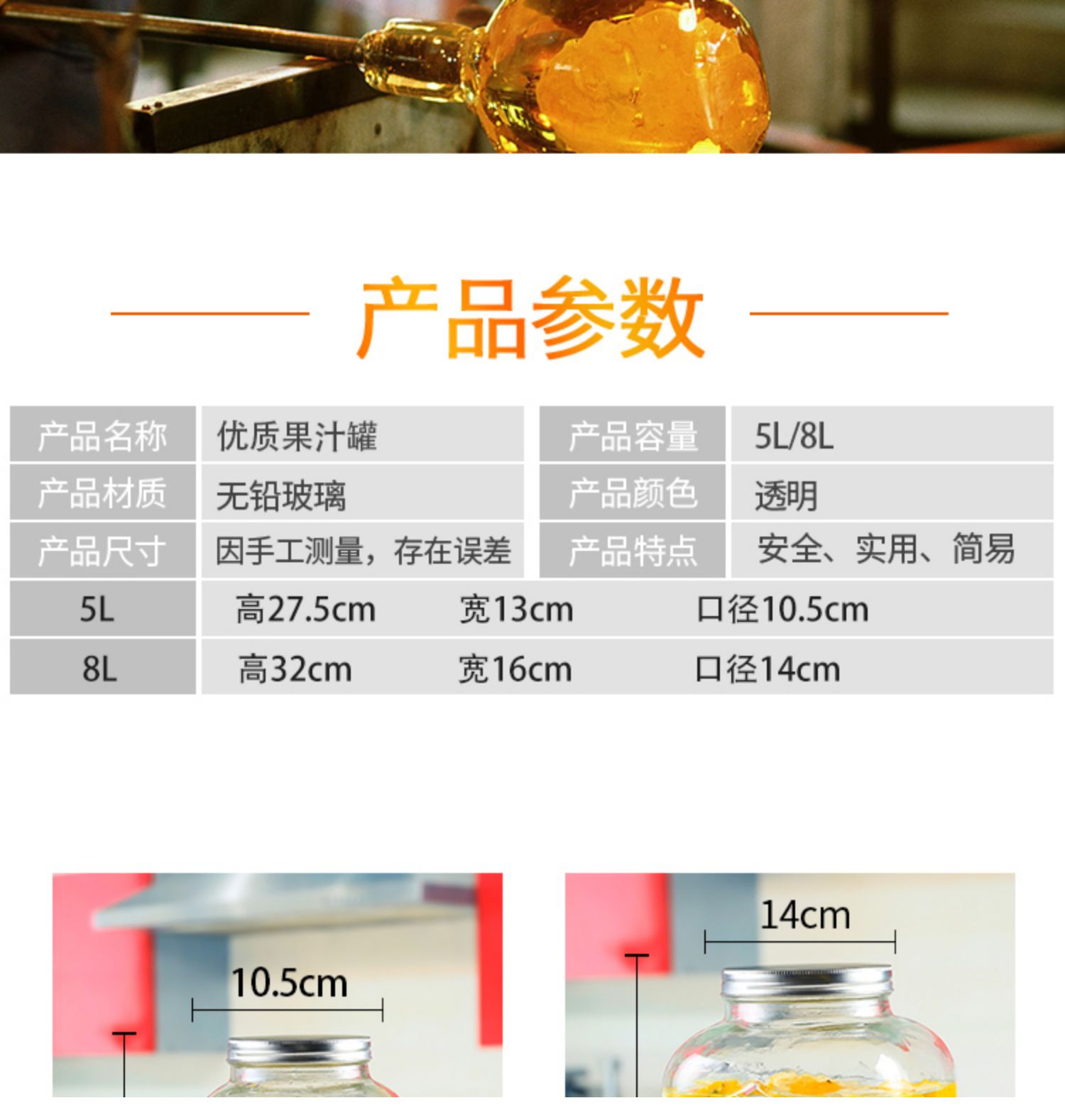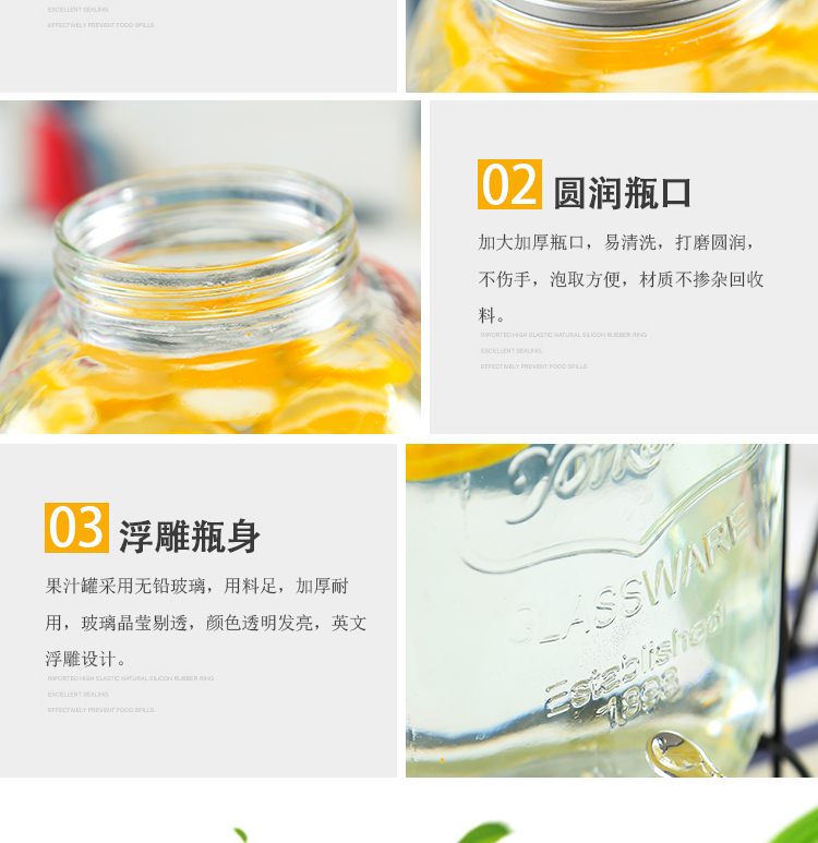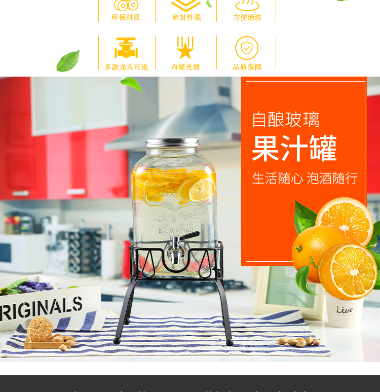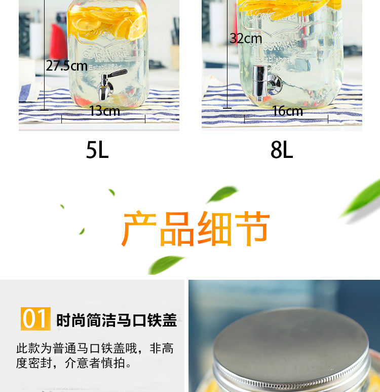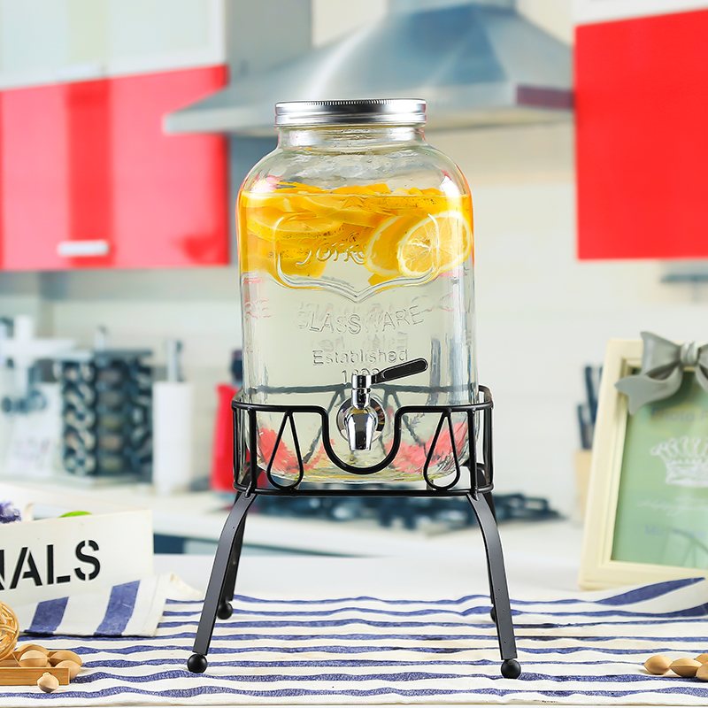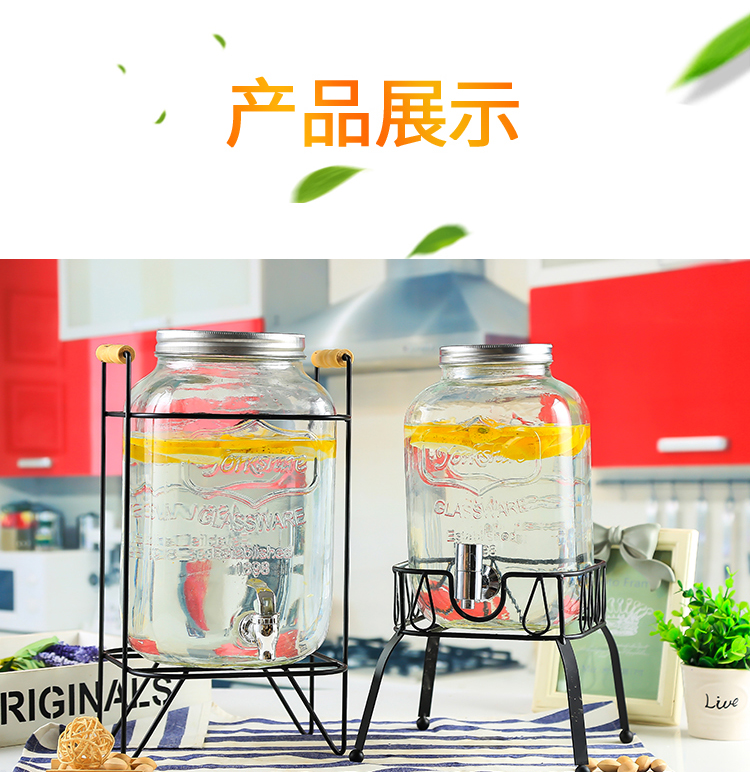 차가운 물 주전자 가정용 용량 유리 항아리 셀프 서비스 음료 버킷 탭 콜라 버킷 컨테이너가있는 상업용 주스 항아리