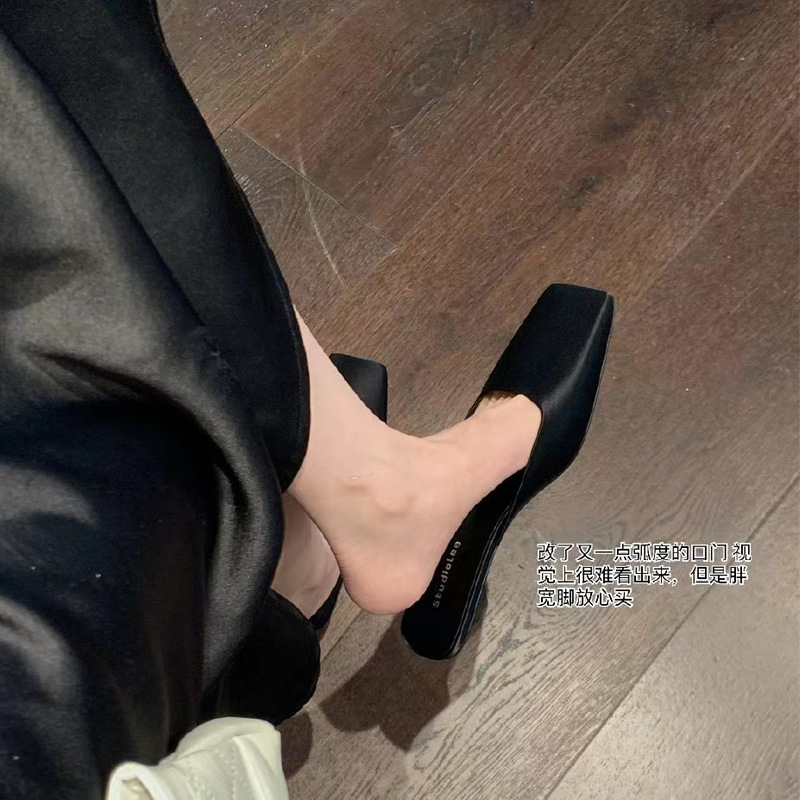 포도 엄마베이스 감성 맛 ~ 프랑스 광장 머리 얕은 입 새틴 삼각형과 뮬러 샌들 여자 여름 바오터우 하프 팝스
