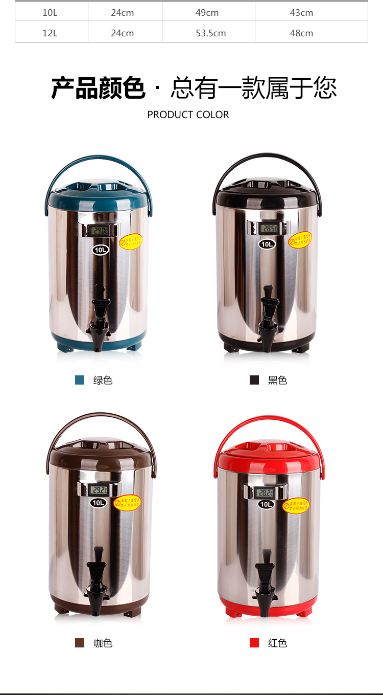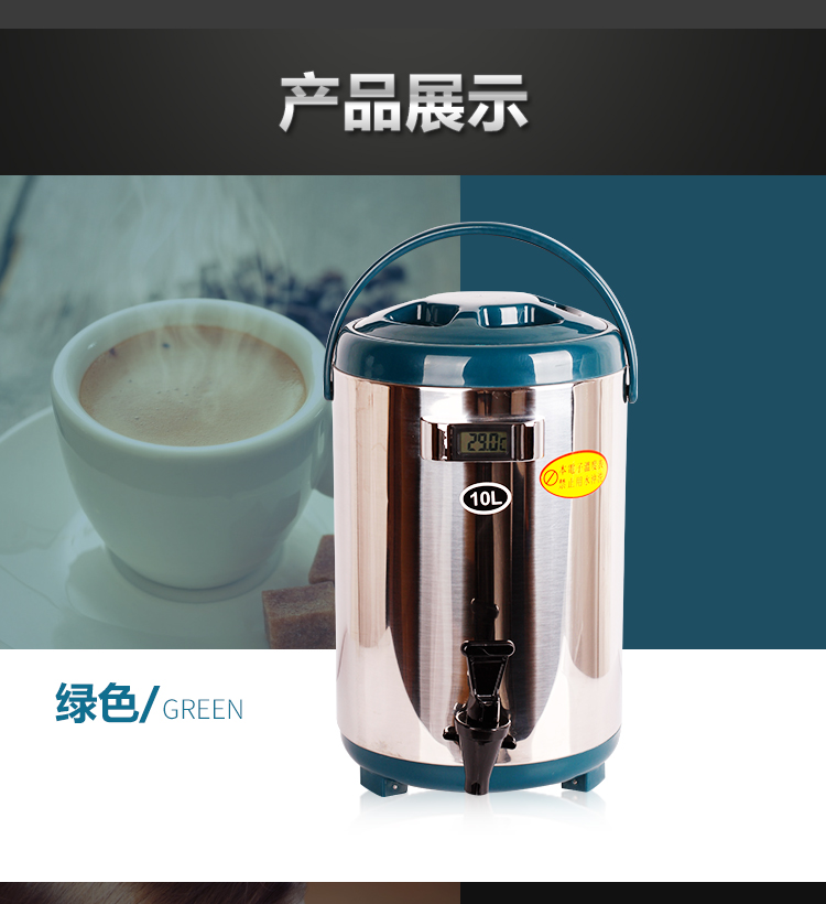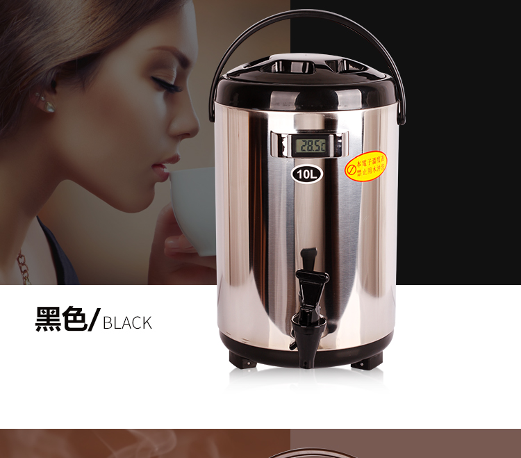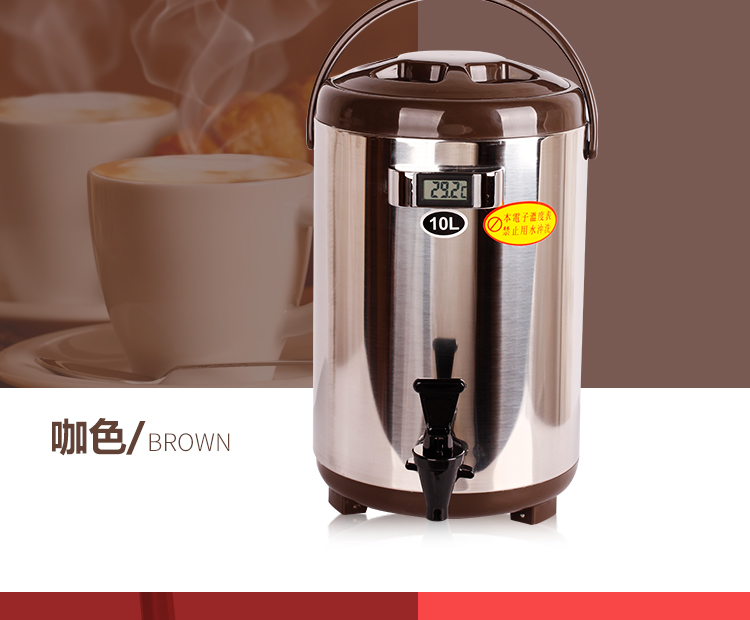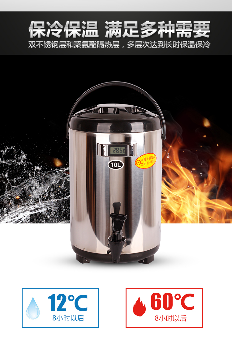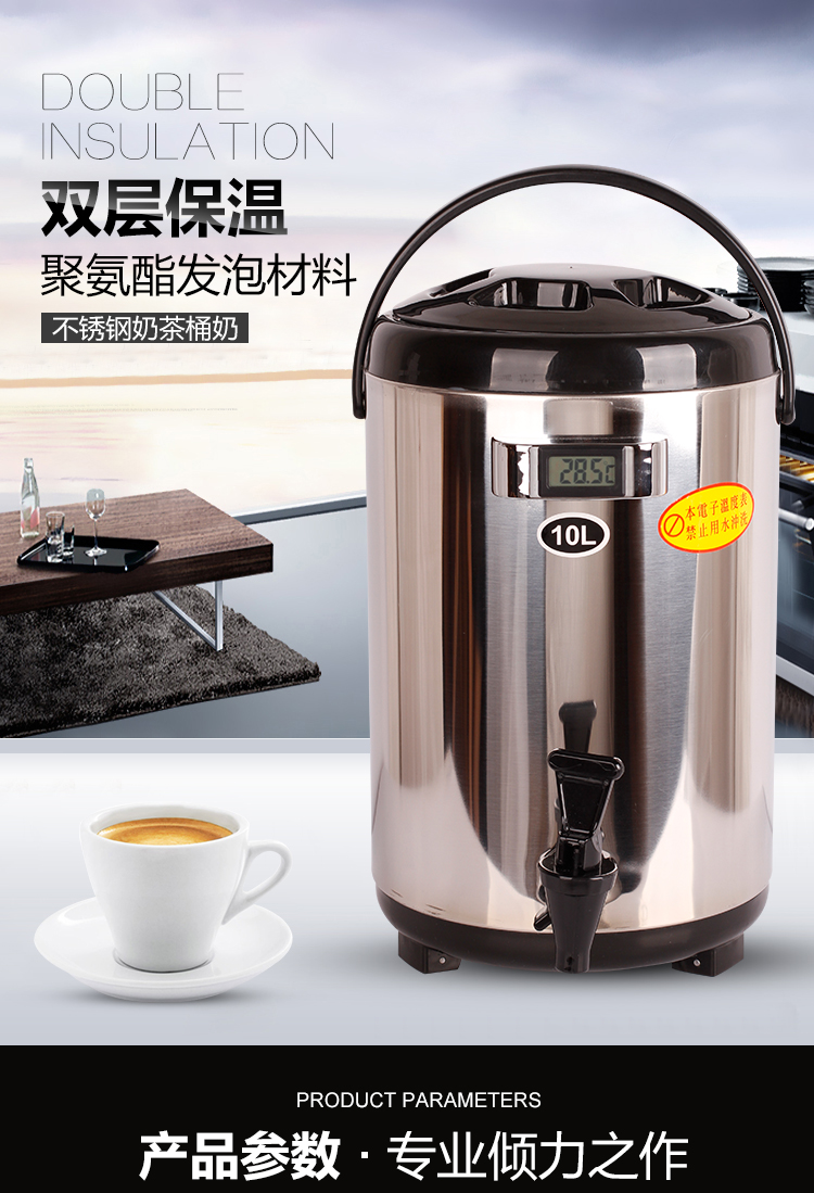 우유 차 가게 열 보존 배럴 스테인리스 우유 차 배럴 상업적인 큰 수용량 두 배 층 온도계 10L12L 콩 우유 차 배럴스토어 가기
