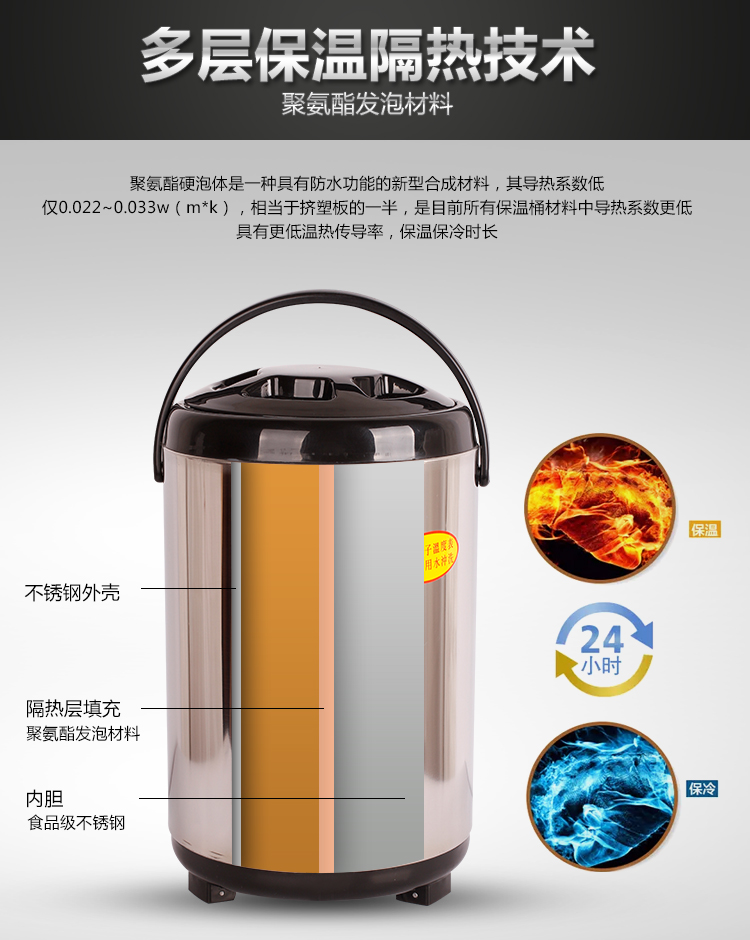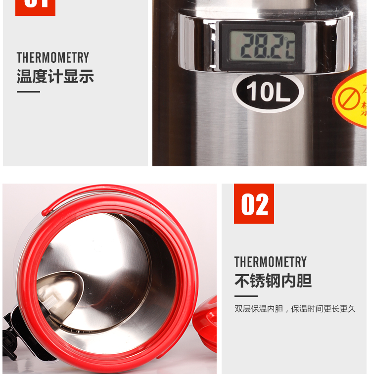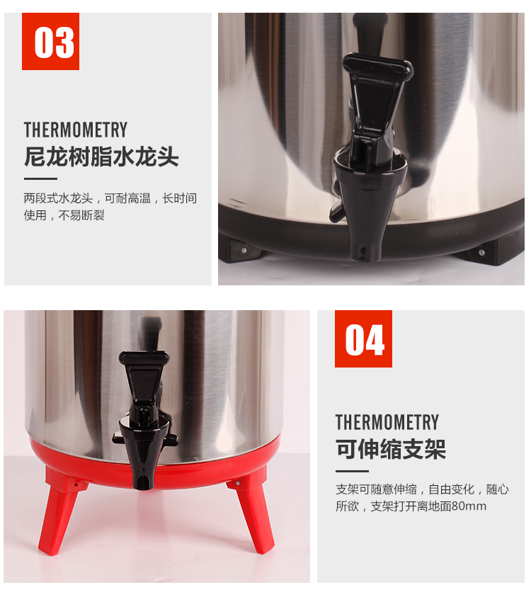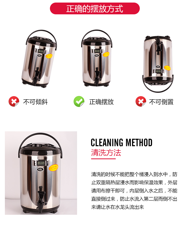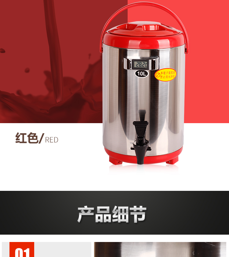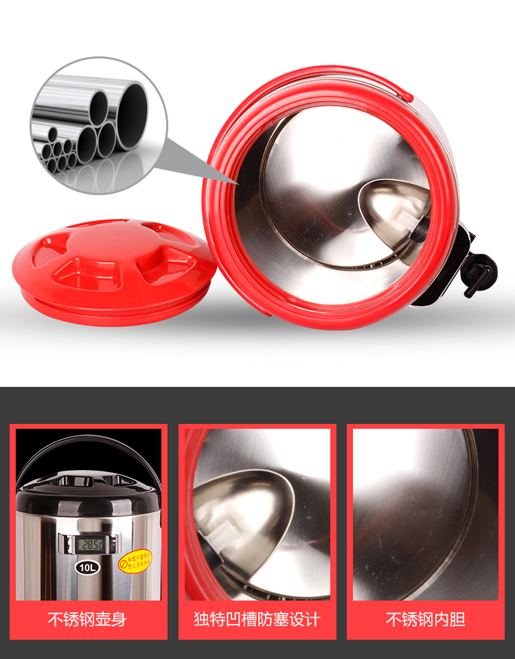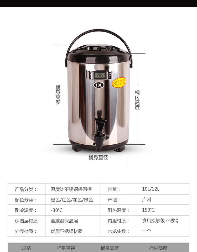 우유 차 가게 열 보존 배럴 스테인리스 우유 차 배럴 상업적인 큰 수용량 두 배 층 온도계 10L12L 콩 우유 차 배럴스토어 가기