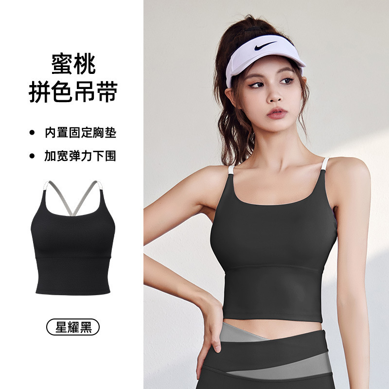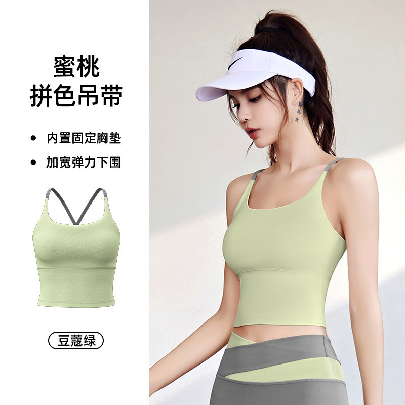 여름 색상 매칭 요가 의류 세트 충격 방지 조립 크로스 백 속옷 여름 여성을위한 빠른 건조 알몸 스포츠 조끼스토어 가기