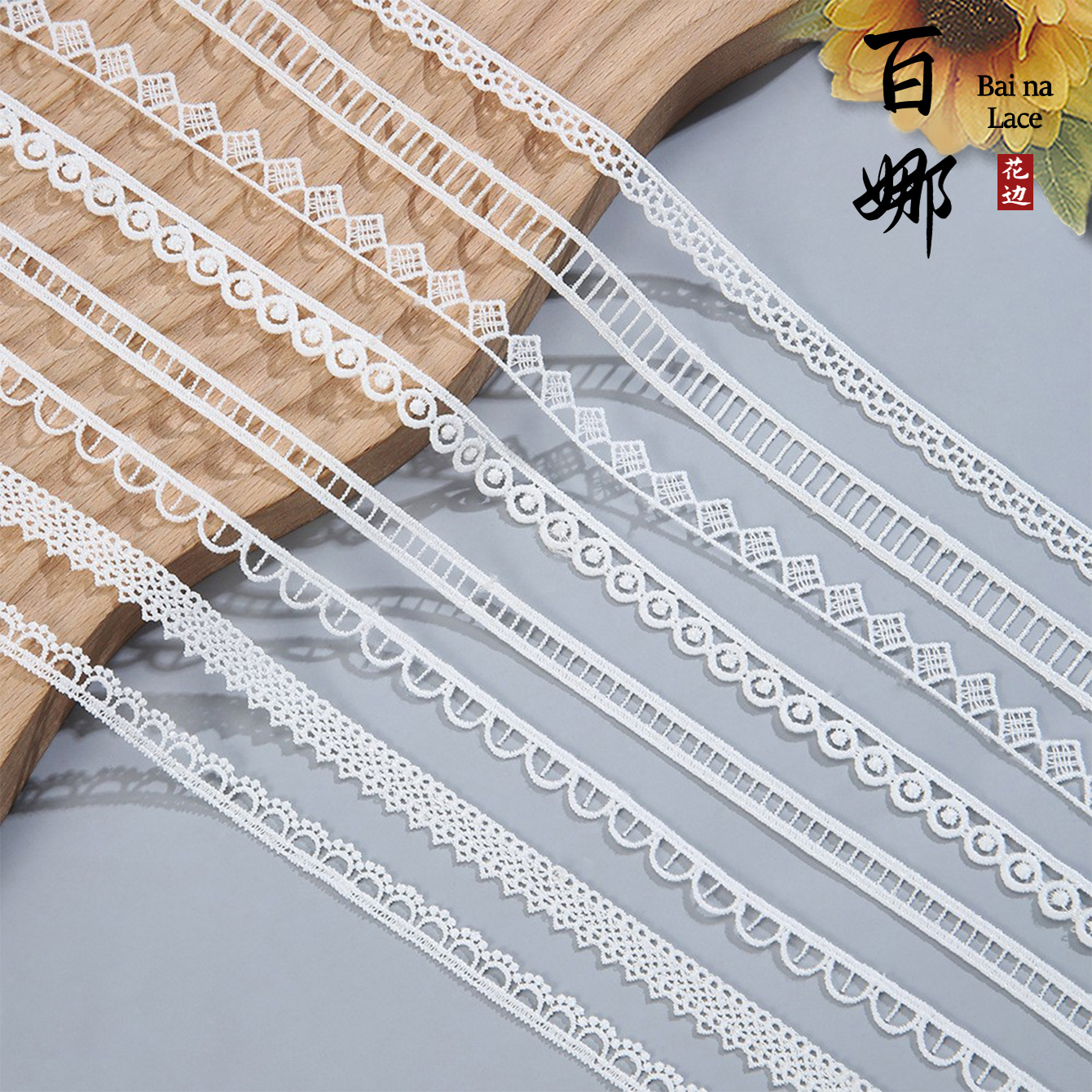 다양한 흰색 일방적 자수 수용성 레이스 폴리 에스테르 실크 웨이브 중공 레이스 재고 레이스 의류 액세서리