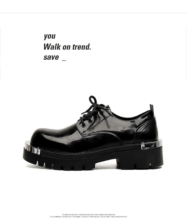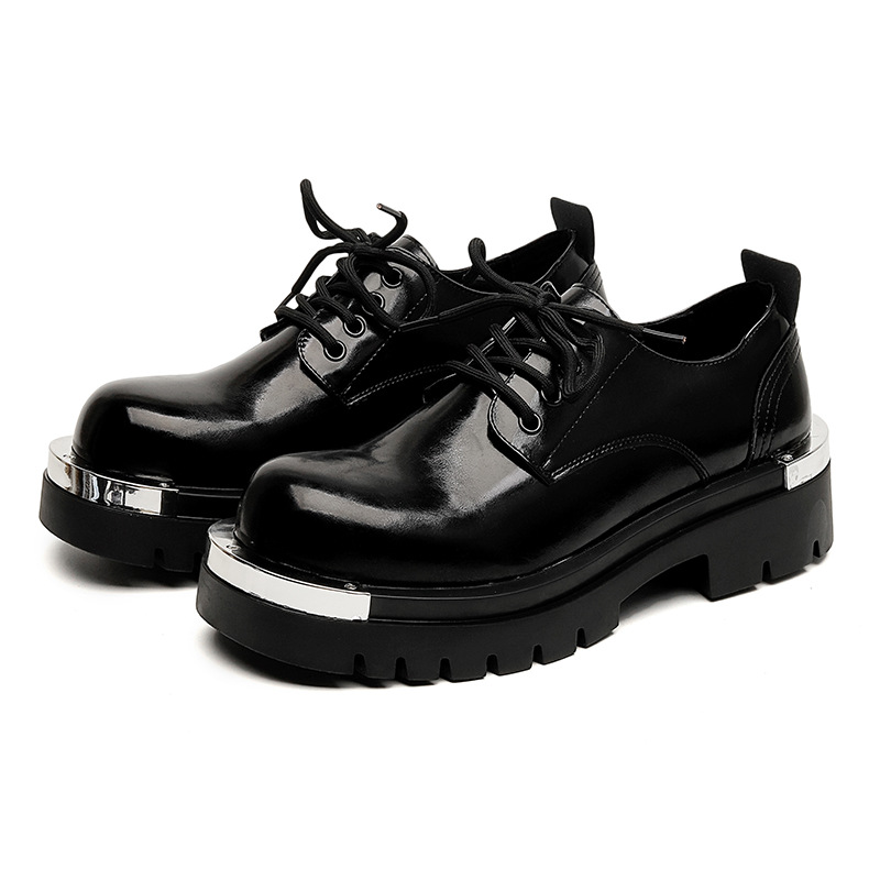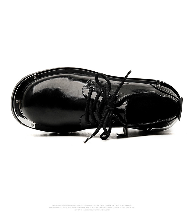 더비 신발 남성 가죽 신발 로우 탑 마틴 부츠 간단한 두꺼운 밑창 증가 캐주얼 블랙 작업복 신발 유행 광택 가죽 신발스토어 가기
