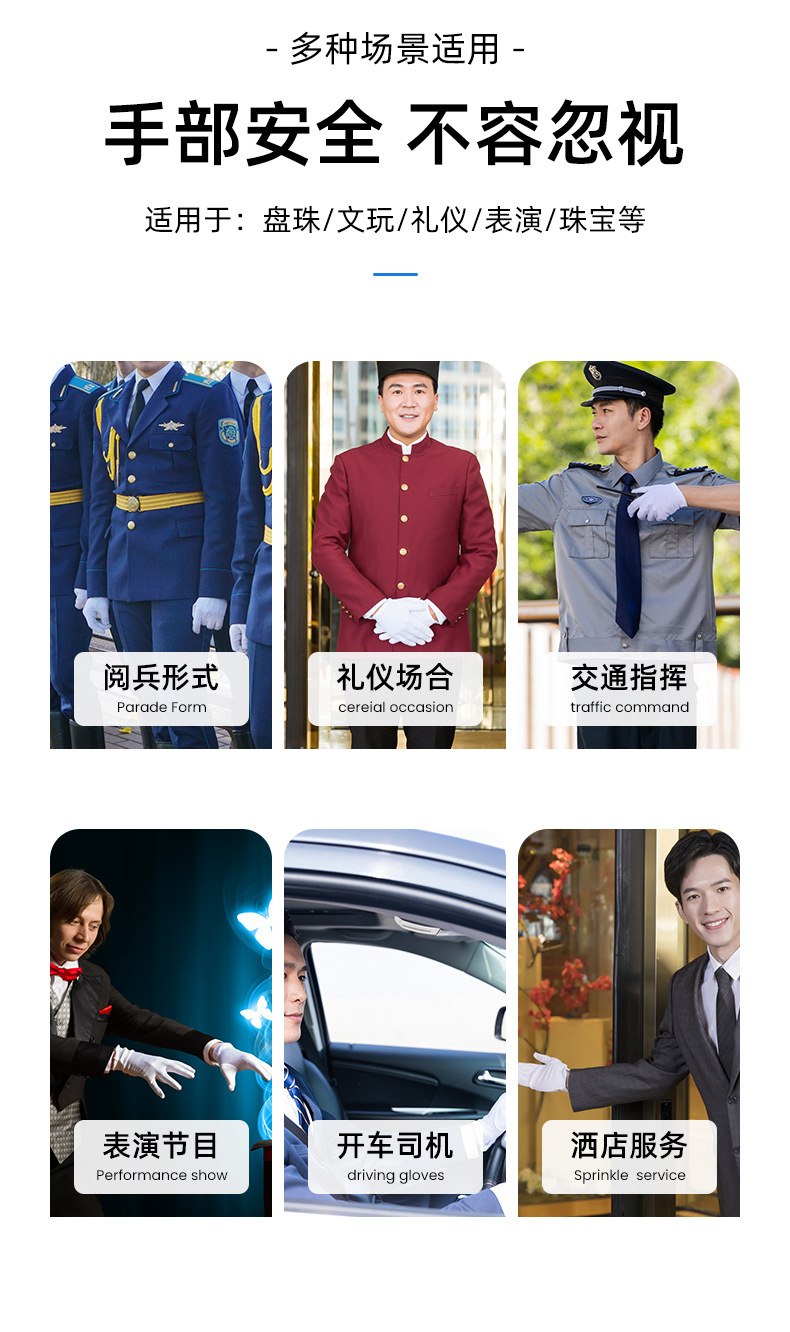 공장 도매 무역용 흰색 면장갑, 길이 연장형, 다용도, 통기성, 땀 방지, 운전 및 예절용, 해외 무역 장갑스토어 가기