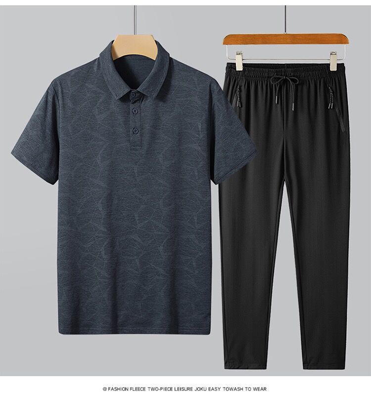 2025 아빠 여름 정장 얼음 실크 티셔츠 남성 반팔 폴로 셔츠 중년 및 노인 캐주얼 운동복 정장 남성