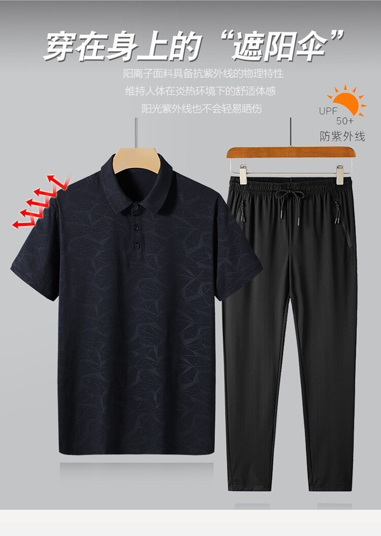 2025 아빠 여름 정장 얼음 실크 티셔츠 남성 반팔 폴로 셔츠 중년 및 노인 캐주얼 운동복 정장 남성스토어 가기