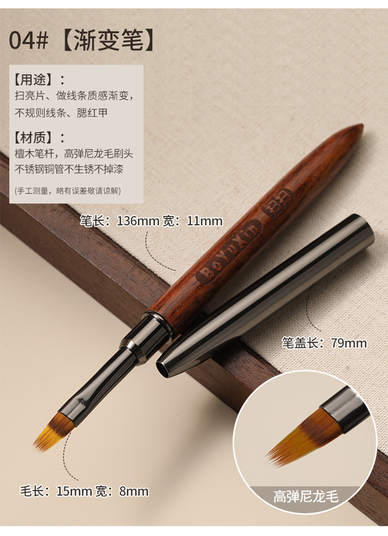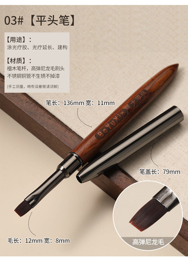 고급 네일 펜 도구 일본 백단 폴 네일 광 요법 브러시 대형 사각형 헤드 대형 플랫 헤드 충전 접착제 특수스토어 가기