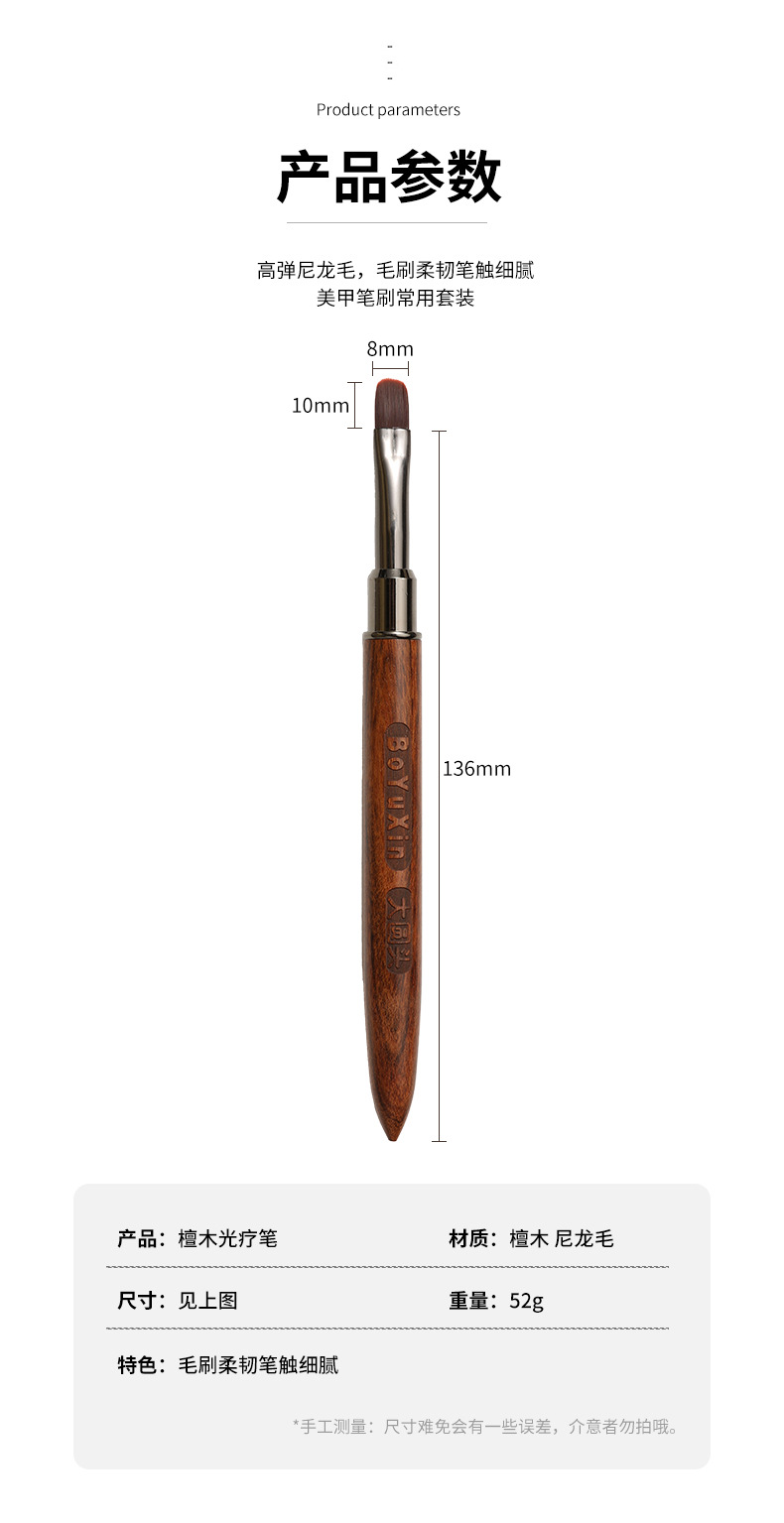 고급 네일 펜 도구 일본 백단 폴 네일 광 요법 브러시 대형 사각형 헤드 대형 플랫 헤드 충전 접착제 특수