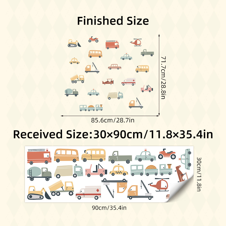 만화 자동차 자체 접착 벽 스티커 귀여운 엔지니어링 자동차 어린이 방 유치원 교실 장식 스티커 BR0365F스토어 가기