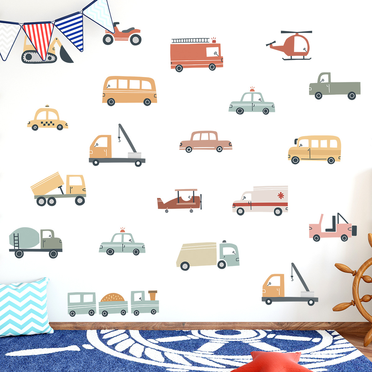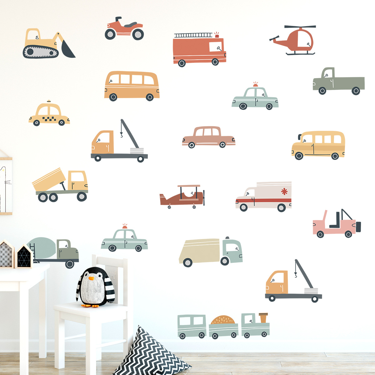 만화 자동차 자체 접착 벽 스티커 귀여운 엔지니어링 자동차 어린이 방 유치원 교실 장식 스티커 BR0365F