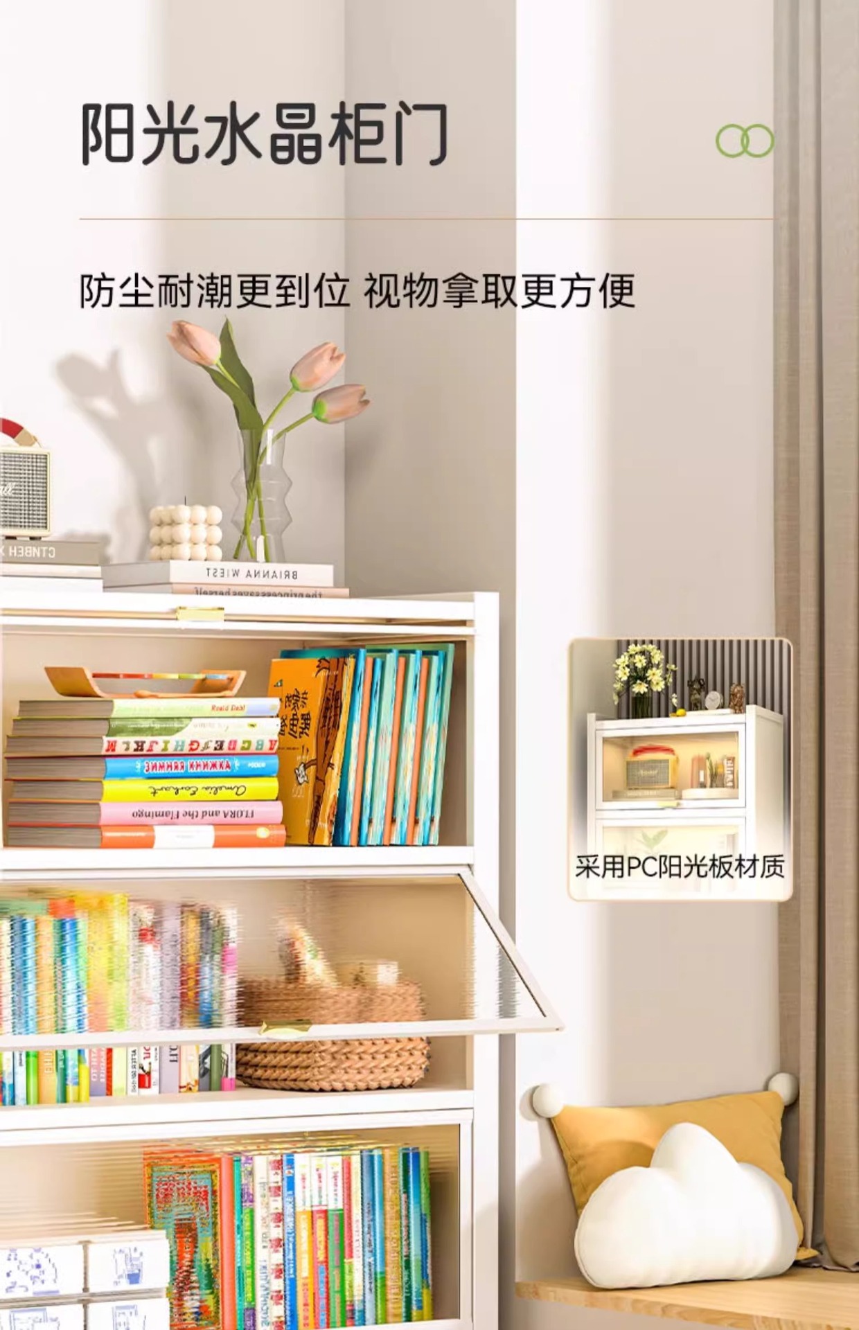 • 구름 흰색 5 문 [80 길이 42 폭 183 높이] 플립 크리스탈 캐비닛 문