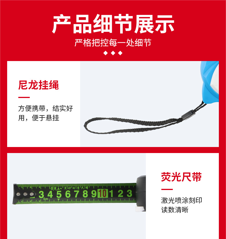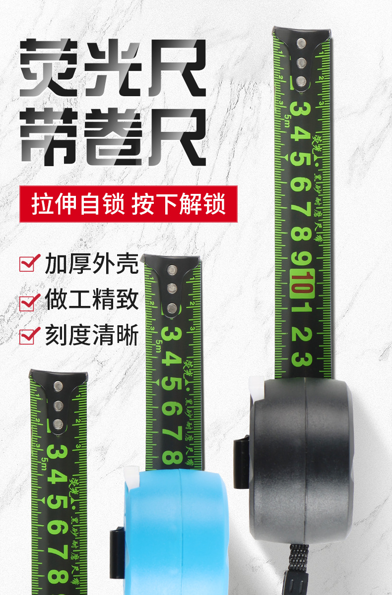 셀프 잠금 스틸 테이프 3 미터 확장 7.5 미터 10 미터 두께 내마모성 형광 통치자 상자 통치자 고정밀 미터 통치자