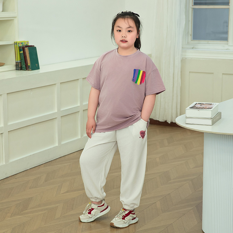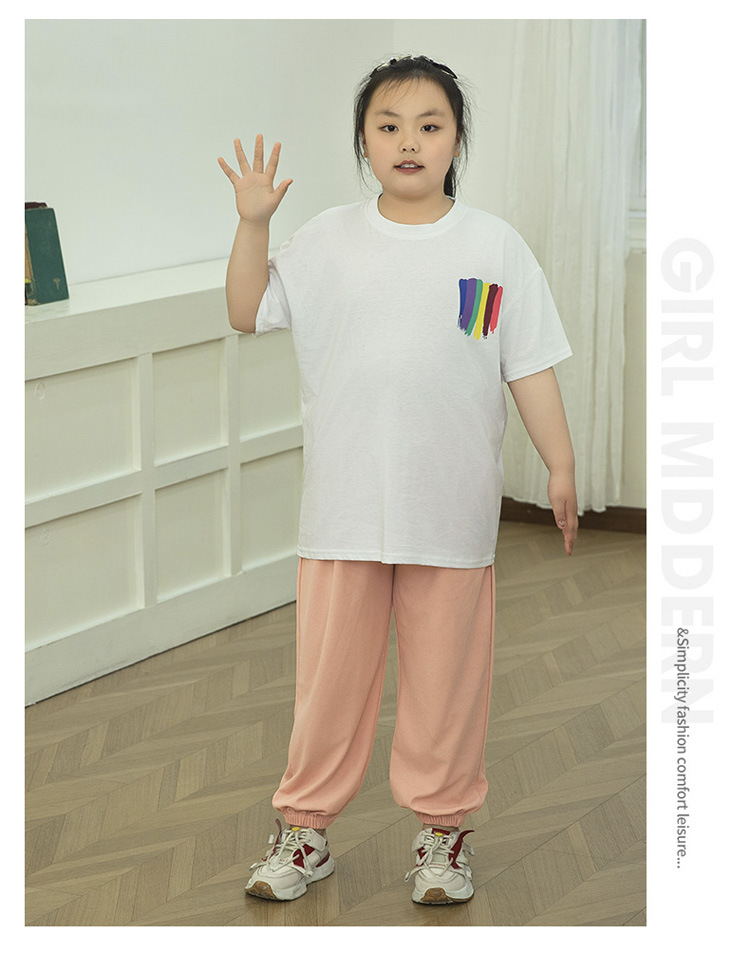 뚱뚱한 아동복 소녀 여름 세트 7-15 세 어린이 플러스 사이즈 스포츠 뚱뚱한 소녀 짧은 소매 바지 투피스 세트