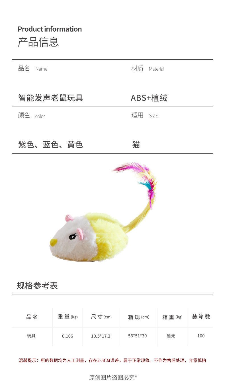 고양이 장난감 스마트 센서 전동 쥐 고양이 자가놀이 장난감 소리나는 장난감 애완용품