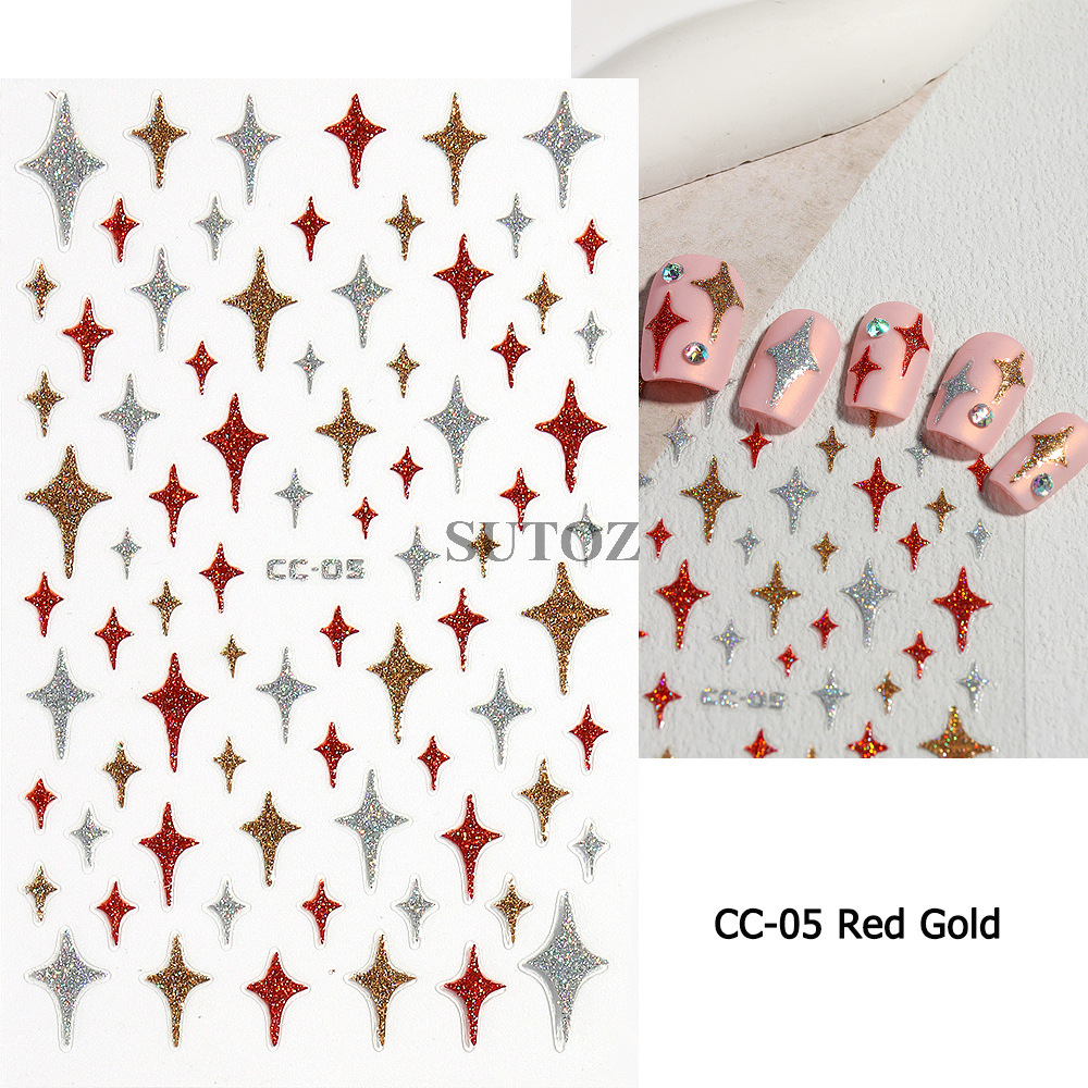 국경 뉴 네일 아트 스티커 여름 핫 반짝이 러브 스타 네일 백 접착 스티커
