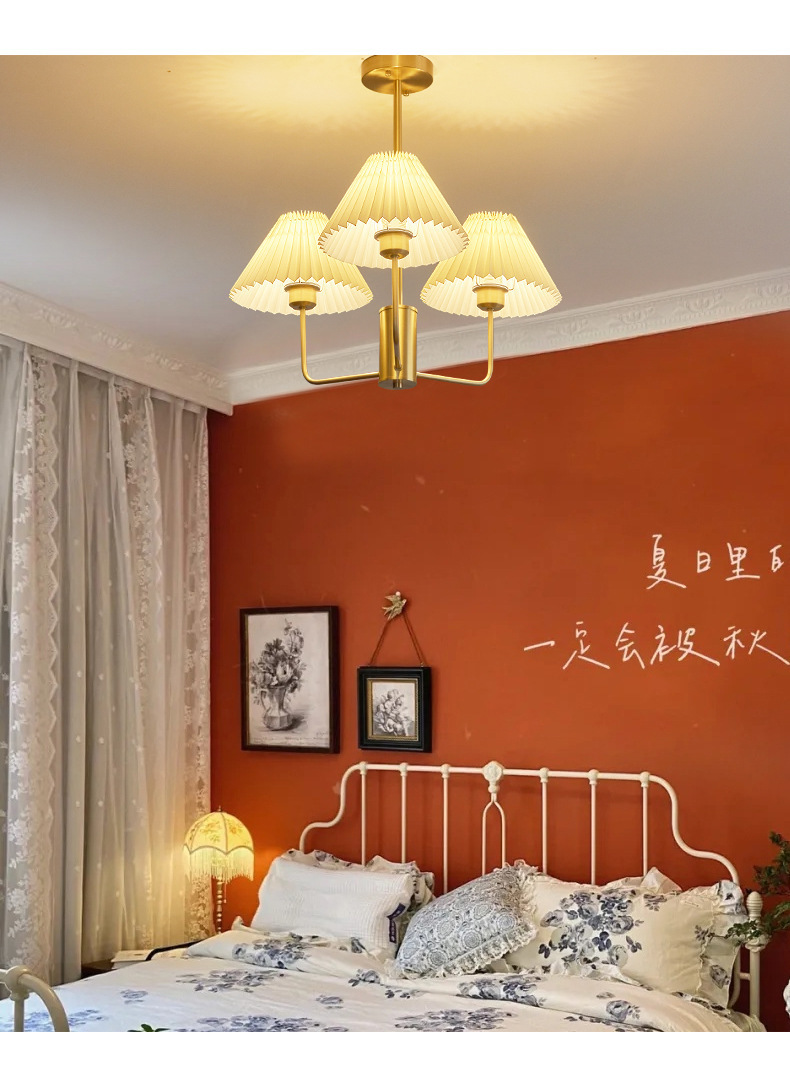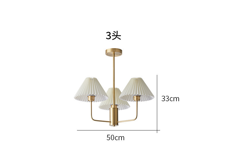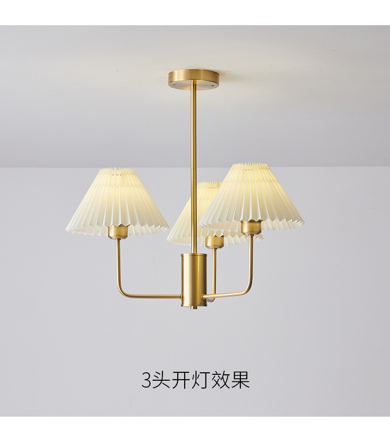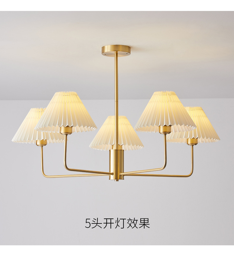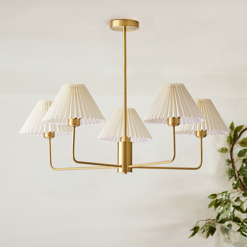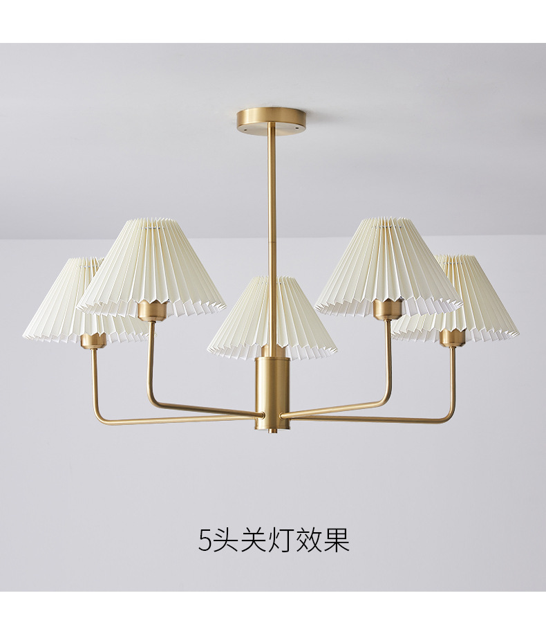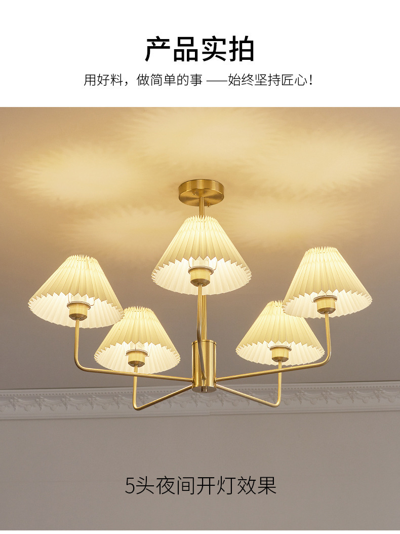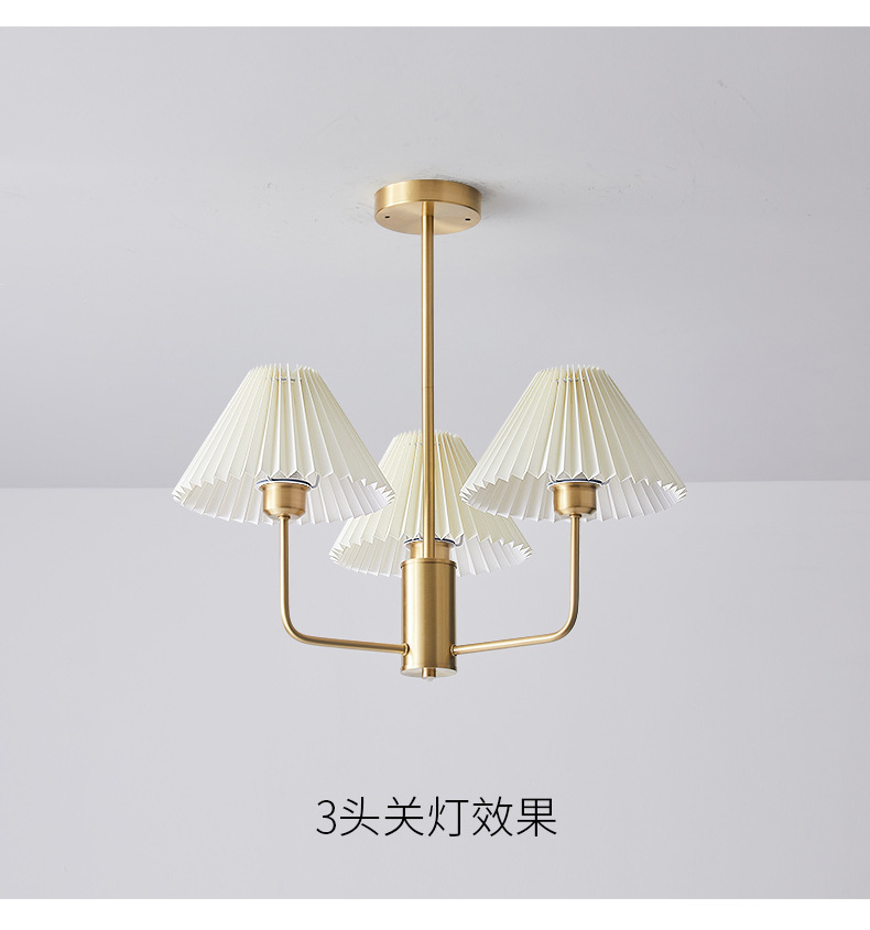 북유럽 일본식 레트로 거실 램프 모든 구리 샹들리에 침실 스터디 램프 룸 마스터 침실 아메리칸 스타일 간단한 주름 램프