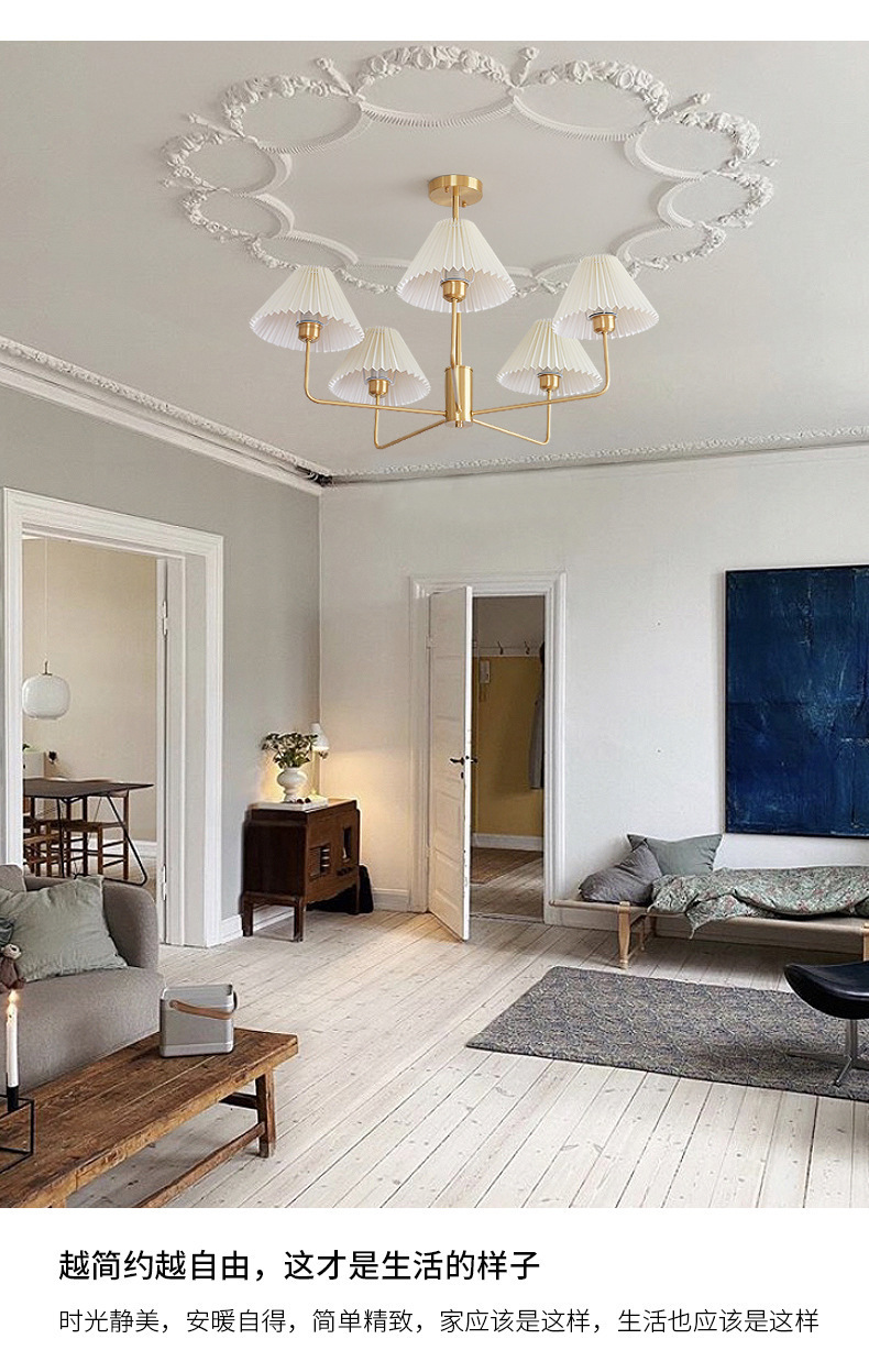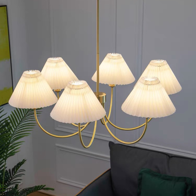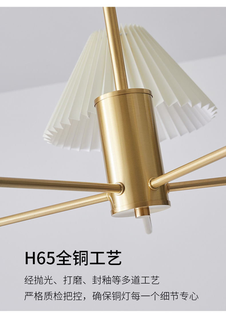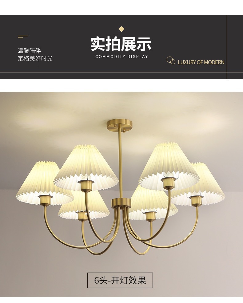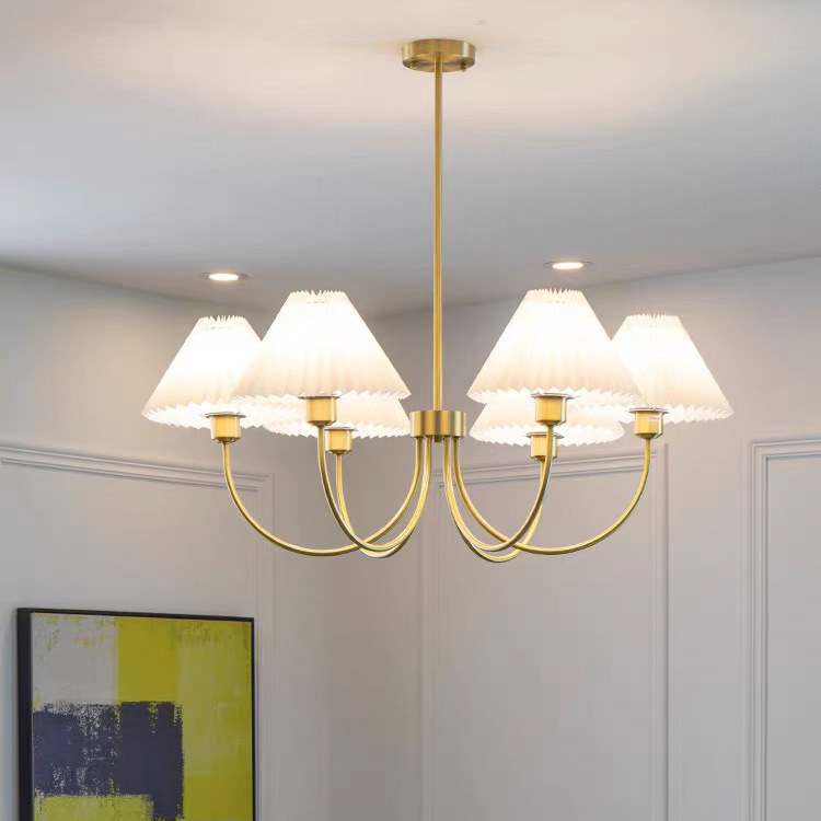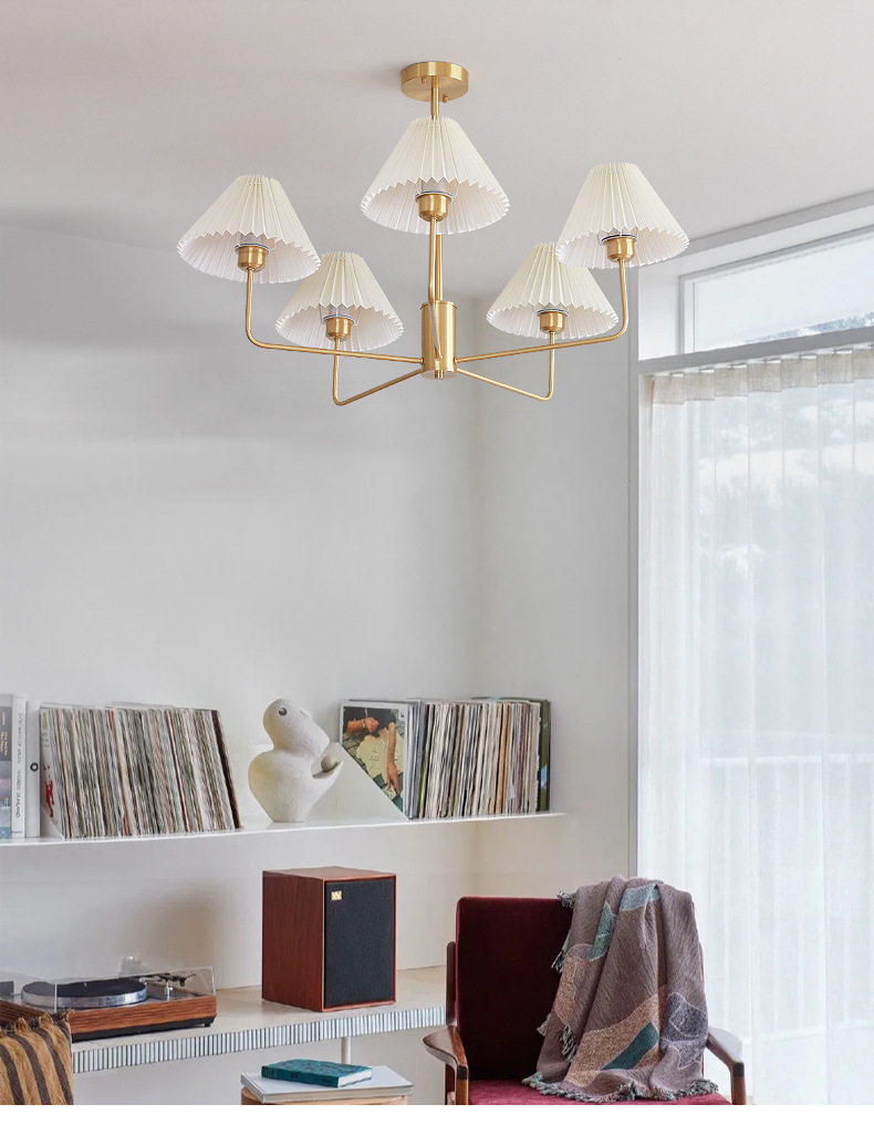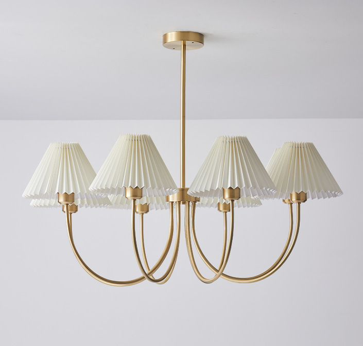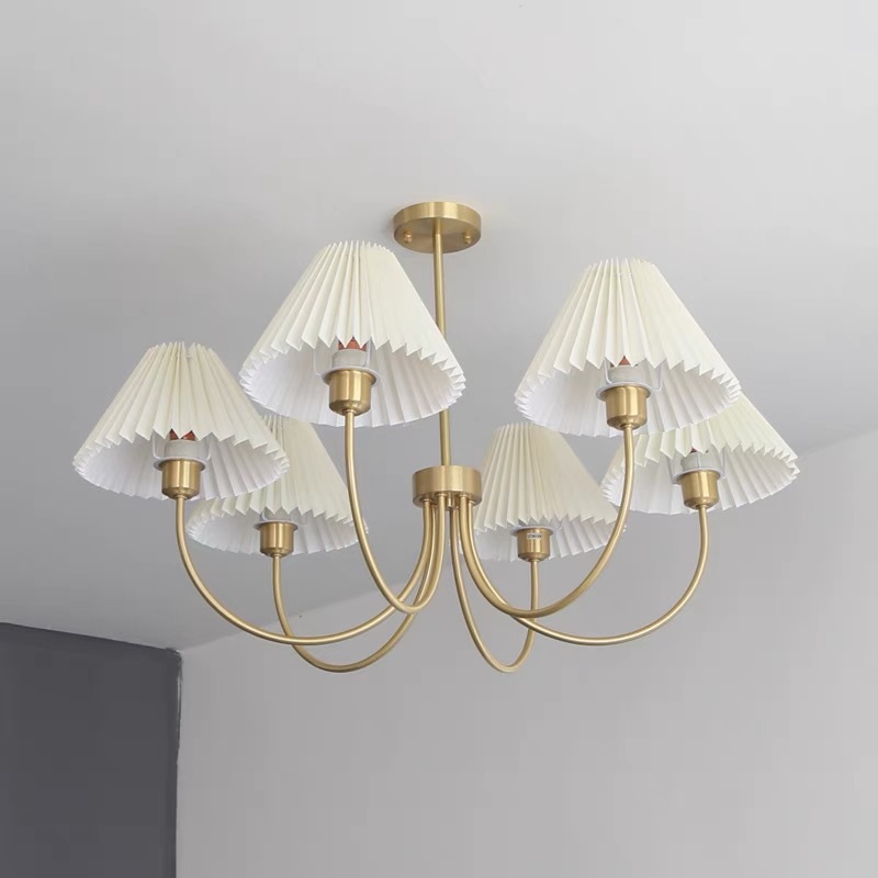 북유럽 일본식 레트로 거실 램프 모든 구리 샹들리에 침실 스터디 램프 룸 마스터 침실 아메리칸 스타일 간단한 주름 램프