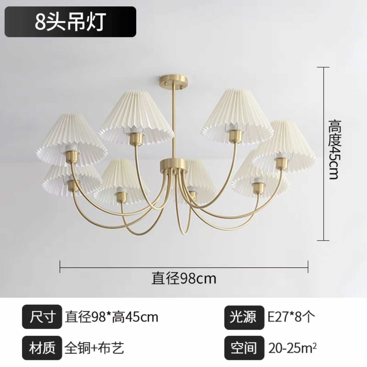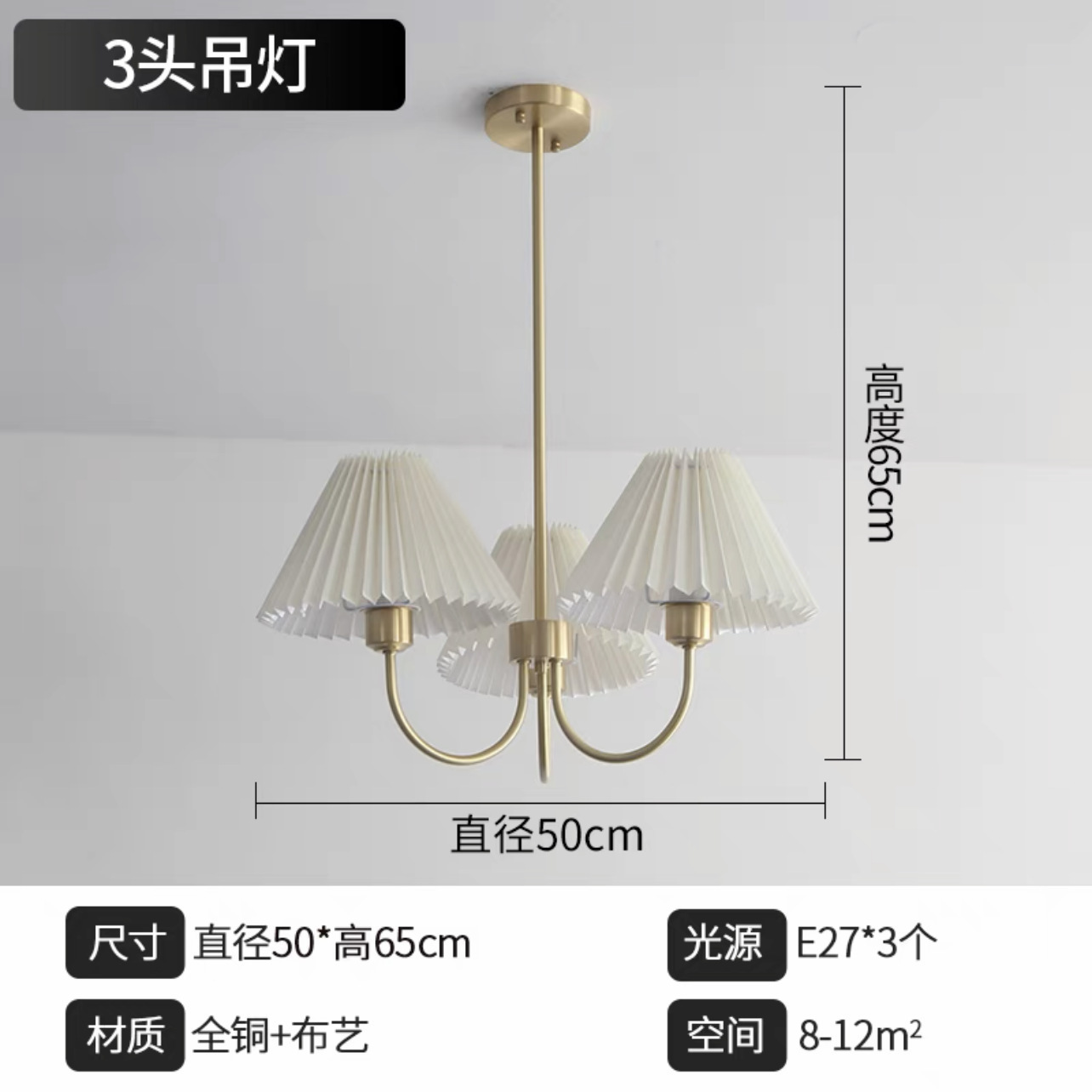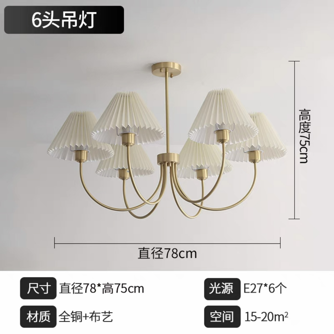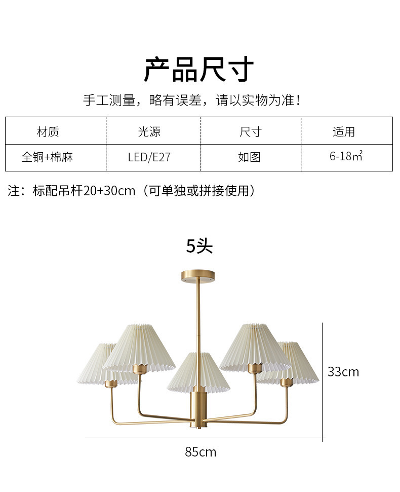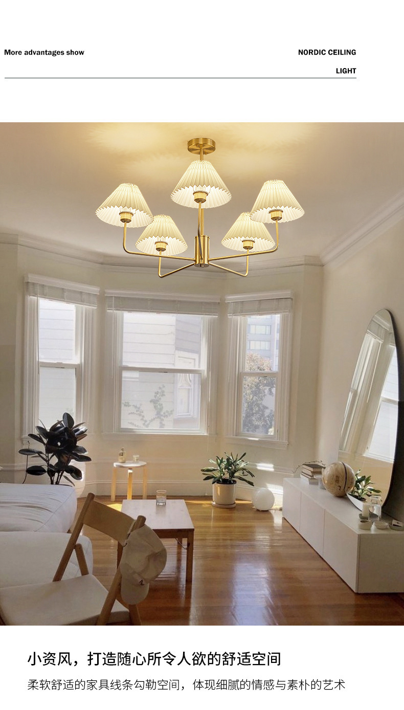 북유럽 일본식 레트로 거실 램프 모든 구리 샹들리에 침실 스터디 램프 룸 마스터 침실 아메리칸 스타일 간단한 주름 램프