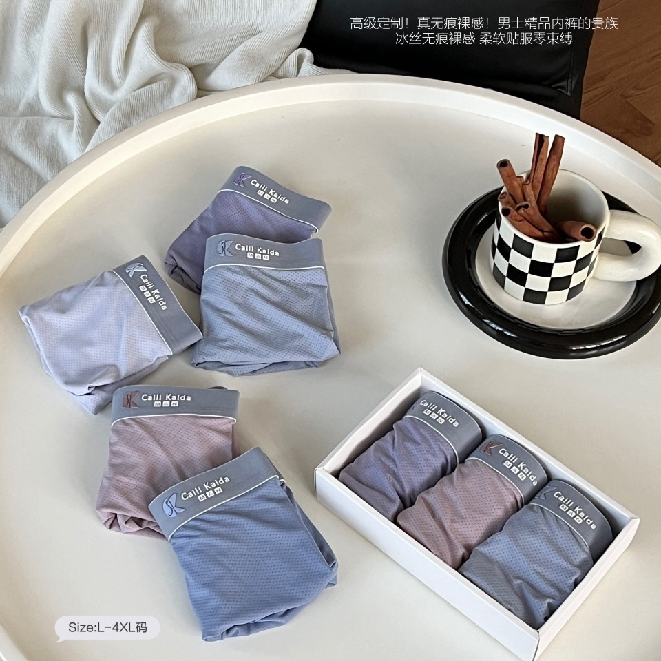 선물 상자 아이스 실크 속옷 남자 여름 얇은 통기성 및 추적없는 복서 플러스 사이즈 반바지