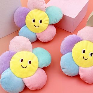 卡通创意七彩太阳花可爱钥匙扣挂件毛绒公仔汽车包包钥匙挂饰批发