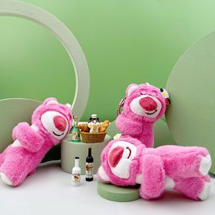 可爱趴姿小熊毛绒挂件玫红色小熊玩偶公仔包包挂饰钥匙扣批发玩具