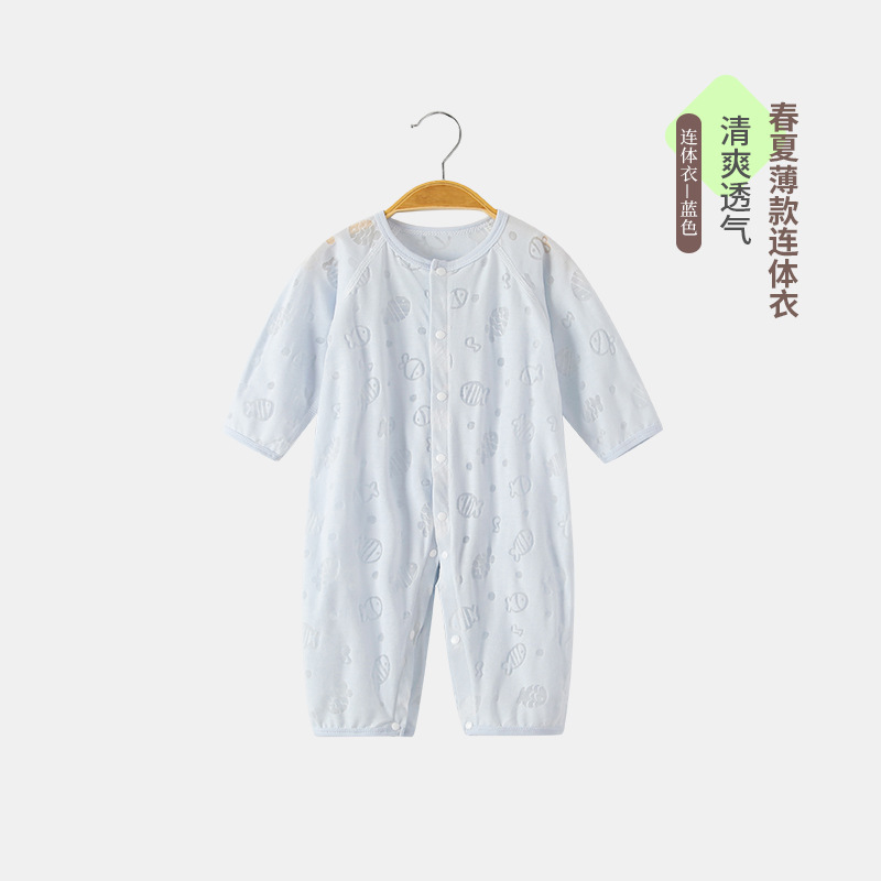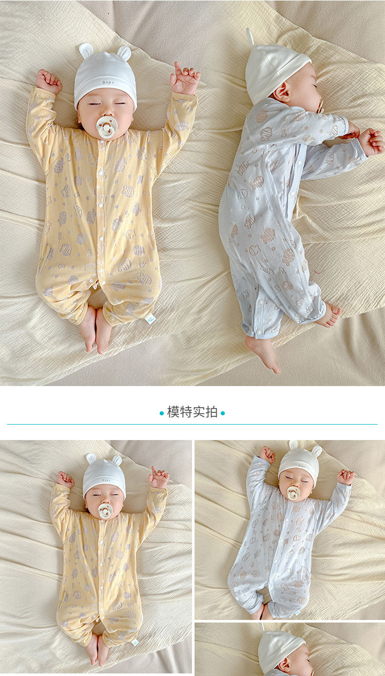 봄과 여름 얇은 통기성 긴팔 보이후드 긴팔 보이후드 신생아복 에어컨 아동용 파자마