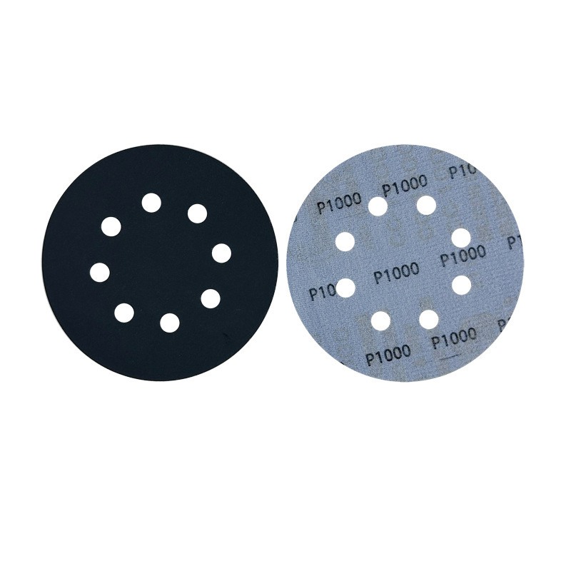 국경 간 방수 사포 5 인치 8 홀 몰려 블랙 사포 실리콘 카바이드 125mm 백 벨벳 디스크 연마 모래 종이스토어 가기