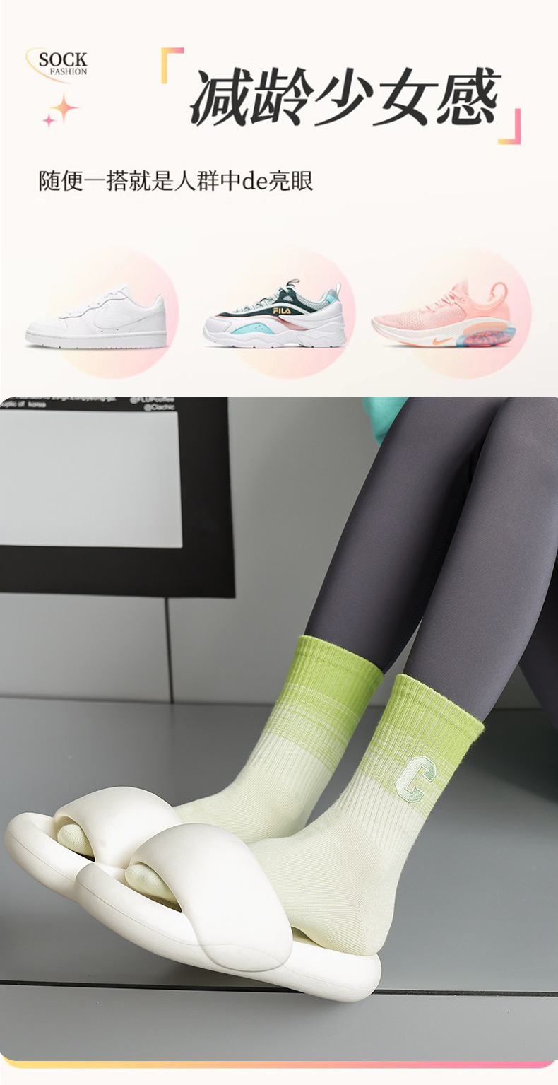 여성용 양말 가을 겨울용 중간 길이 2025년 신상품 인기 순면 상어 팬츠와 함께 착용하는 중간 길이 러닝 하이탑 요가 양말스토어 가기