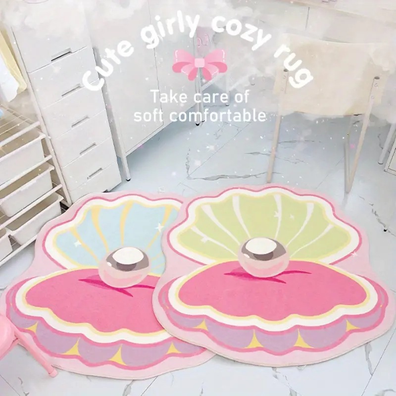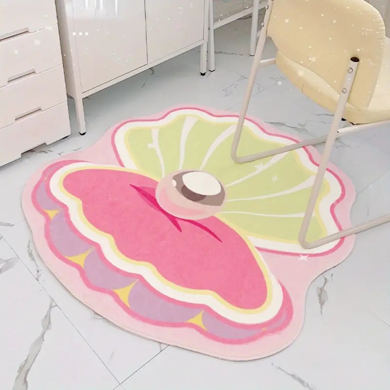 국경 간 모조 캐시미어 진주 쉘 카펫 도파민 귀여운 침실 침대 옆 담요 베이 창 담요 라벨링 생성
