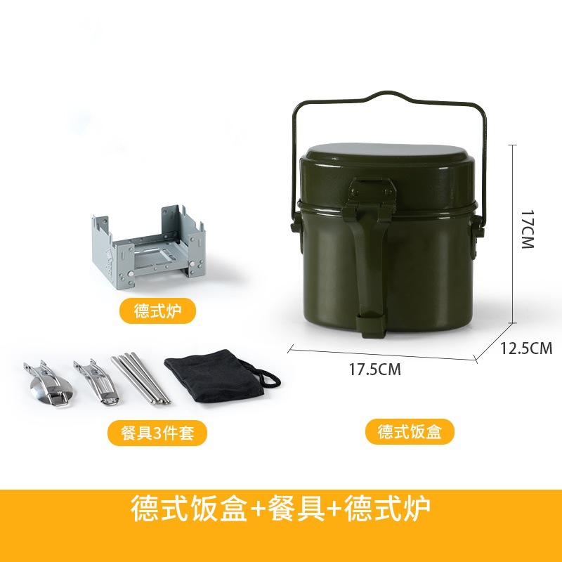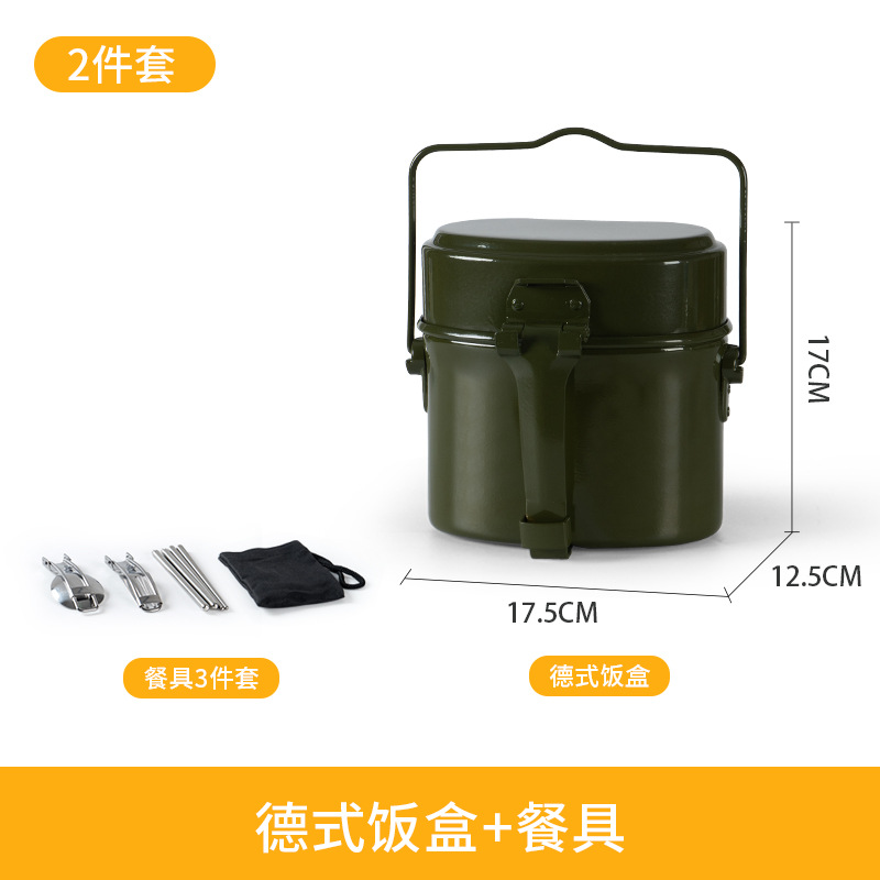 육군 팬 독일 점심 마칭 가열 도시락 오래된 3 피스 세트 야외 캠핑 다기능 알루미늄 고온 방지 도시락스토어 가기